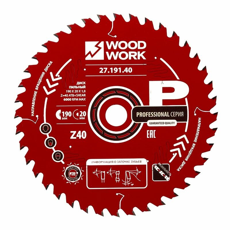 Пильный диск по дереву, фанере 190×1.8×20 Z40 A15 Woodwork для поперечного пиления для циркулярной пилы: сравнение цен, характеристики, фото, актуальное наличие и цены.