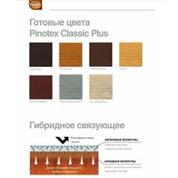 Быстросохнущая пропитка-антисептик Pinotex Classic Plus подходит для деревянных строений из бруса, оцилиндрованного бревна, вагонки, блок-хауса, планкена, полукруглых облицовочных профилей, окон, дверей и других вертикальных поверхностей из пиленой и строганой древесины хвойных и лиственных пород.