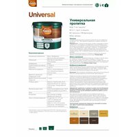 Пропитка для дерева Pinotex Universal используется как для наружных работ, так и безопасна для применения внутри помещений (универсальная), т. к. не содержит биоцидных добавок, не выделяет вредных веществ. Формула 2 в 1: наносится без грунта, питает и защищает от влаги и загрязнений, окрашенная поверхность устойчива к воздействию солнца, дождя, снега и мороза. Pinotex Universal легко наносится и быстро впитывается в поверхность древесины, образуя полуматовое покрытие. Подчеркивает естественную текстуру древесины.