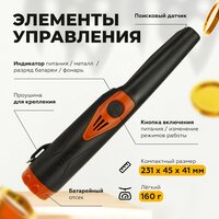 Пинпоинтер сфинкс 01, Крепление на ремень, Тренчик, Батарея 9В типа «Крона», Гарантийный талон.
