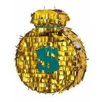 Пиньята в форме денежного мешка идеально подойдет для оформления значимого события и может быть заполнена конфетами, игрушками или любыми другими подарками, которые вы сами выберете. Разбить пиньяту и достать все приятные сюрпризы – это всегда весело и захватывающе! Так же, в ассортименте магазина МосШар вы найдете яркую, удобную биту для разбивания пиньяты.