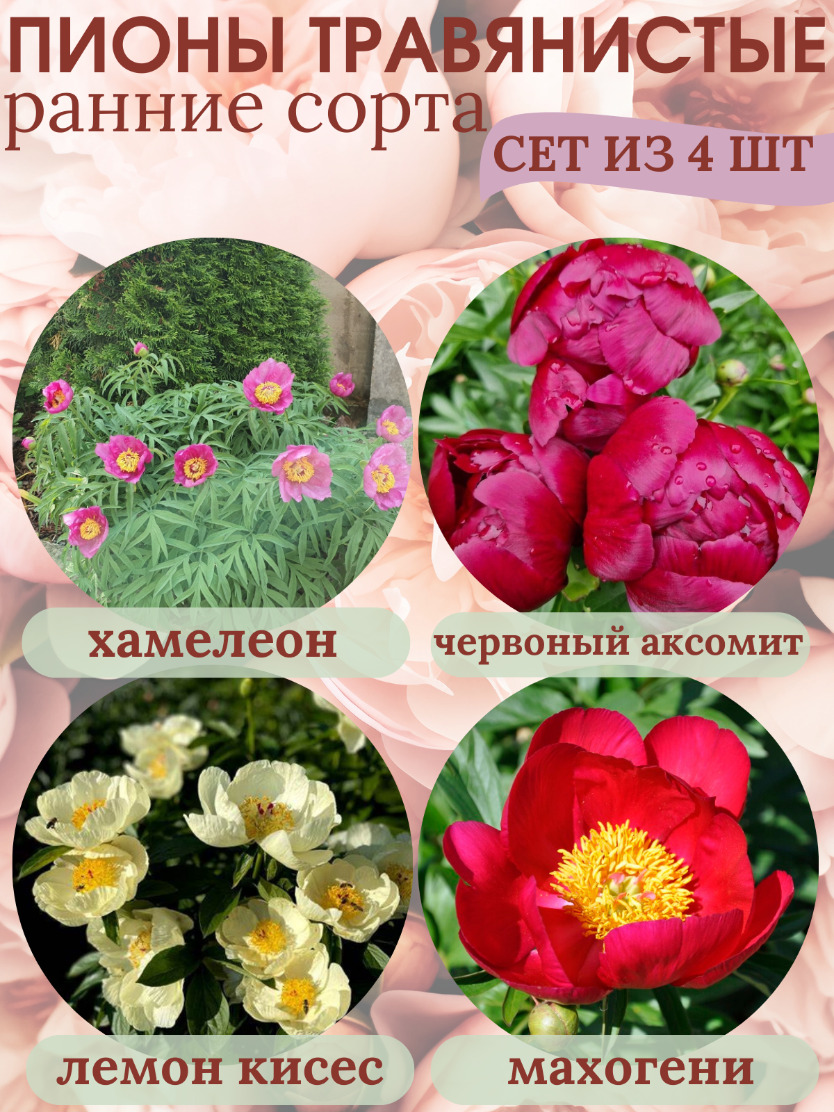 Пионы травянистые, саженцы многолетние Сет №2 из 4 штук: сравнение цен, характеристики, фото, актуальное наличие и цены.