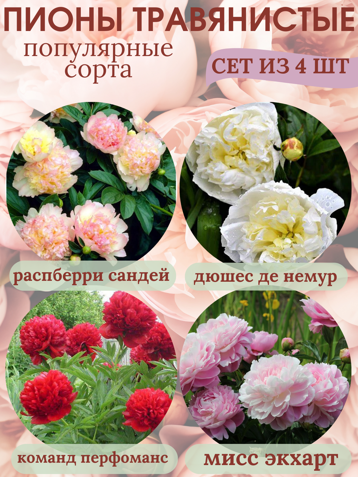 Пионы травянистые, саженцы многолетние Сет №7 из 4 штук: сравнение цен, характеристики, фото, актуальное наличие и цены.