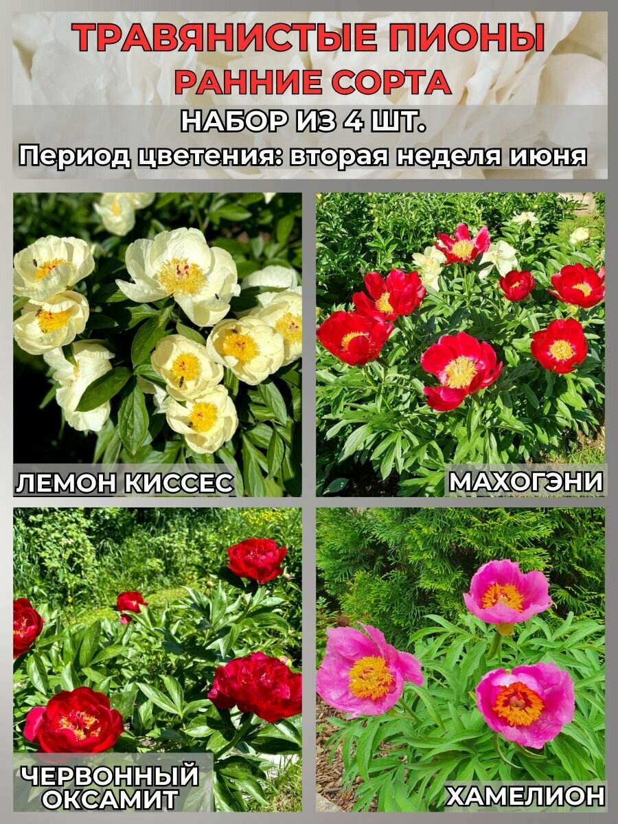 Пионы травянистые, саженцы, набор 4 штуки: сравнение цен, характеристики, фото, актуальное наличие и цены.