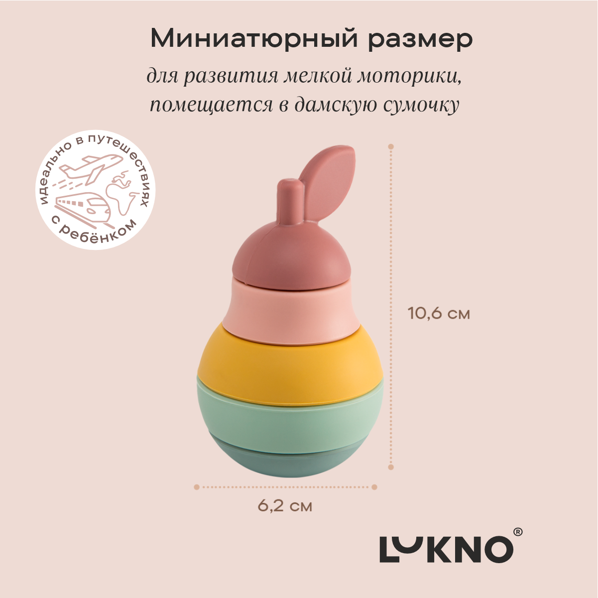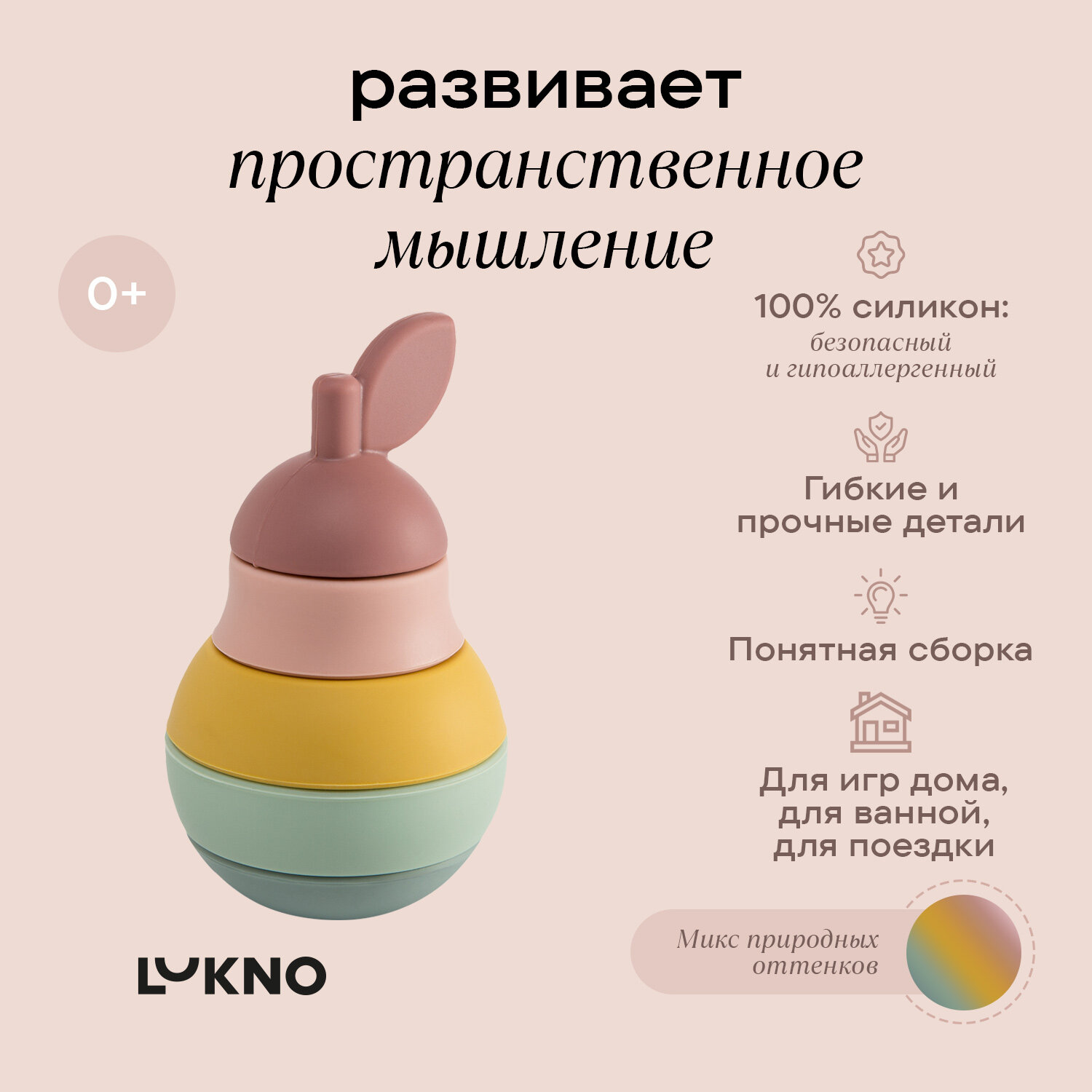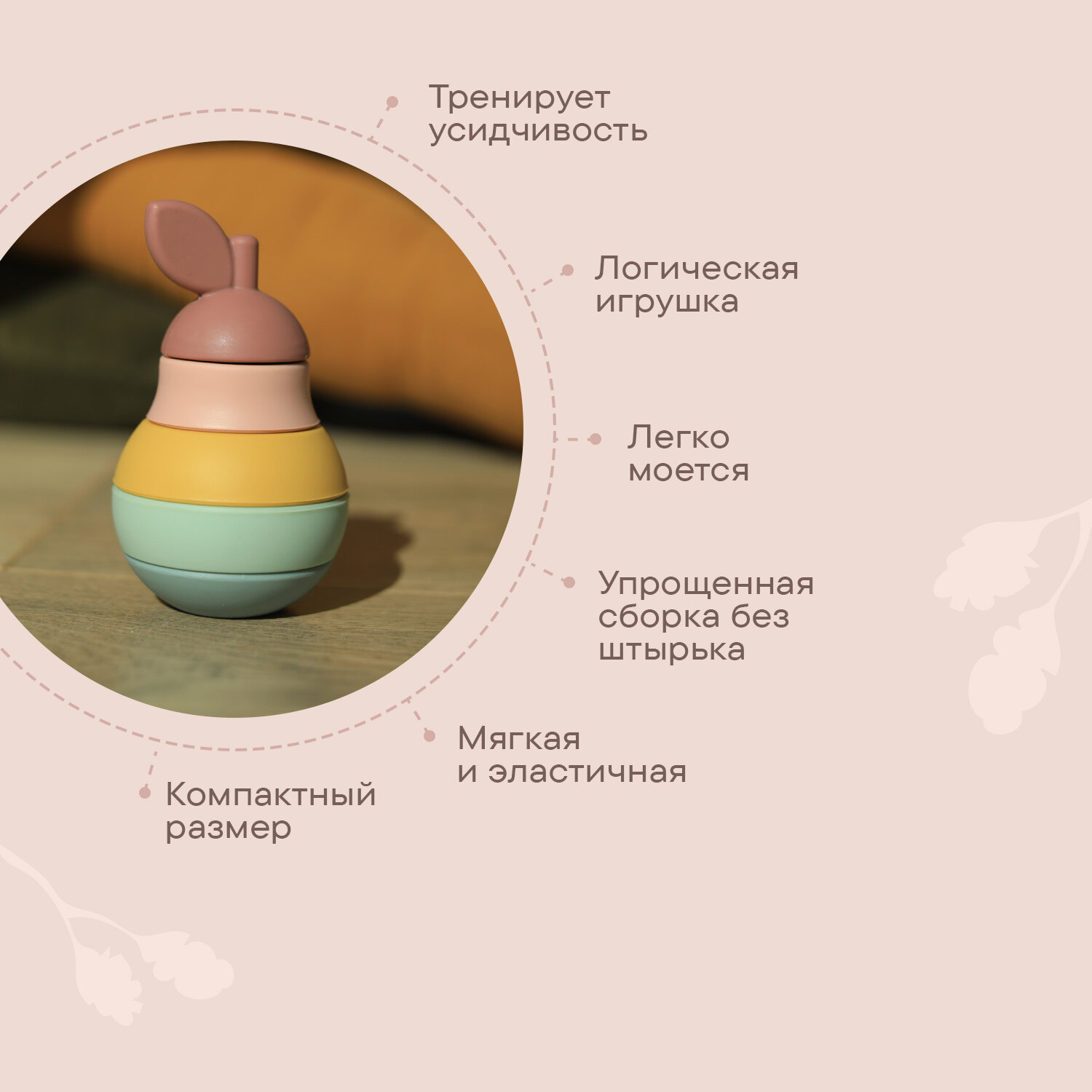Пирамидка – сортер детская для мальчиков и для девочек «Груша» LUKNO — игрушка для малыша, которая помогает в развитии важных навыков деток. Эти игрушечные мини пирамидки в виде различных фигурок и башен легко собирать. Они специально разработаны для самых маленьких, начиная от нескольких месяцев и до 1.5 годика. Фигура из высококачественного пищевого силикона, лишённого вредных веществ, включая бисфенол А, создана без использования стержней, что делает её абсолютно безопасной для ребенка любого возраста, что гарантирует безопасность для здоровья. Материал не подвержен разрушению, разбиванию или откусыванию, что обеспечивает долгий срок службы изделия. Мягкая силиконовая текстура милой резиновой развивающей игрушки приятна на ощупь, а нежные постельные тона не раздражают глаз и действуют успокаивающе. Несмотря на свою простоту этот игрушечный конус монтессори способствует развитию интеллекта у младенца, улучшает мелкую моторику рук, усидчивость, тактильность, учит счету и сравнению фигур по размеру и цвету, выстраивать логические связи и достигать поставленных целей. Интересную развивашку можно использовать для игры в ванной во время купания, в песочнице, поэтому это отличный вариант для новорожденных от 6 месяцев. Все товары нашего магазина Bunny Hill безопасны, даже для самых маленьких малышей. Предметы из силикона можно мыть в посудомоечной машине, стерилизовать, использовать в микроволновке и при необходимости замораживать. Наша главная задача - это забота и создание радостной и комфортной среды для наших деток и мам. Пирамида – головоломка прекрасно подойдет на подарок на день рождения, на крестины и по любому поводу.