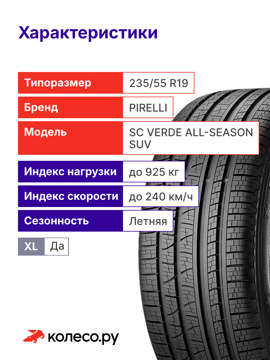Шина Пирелли SC VERDE All-Season SUV R19 235 55 105 V: сравнение цен, характеристики, фото, актуальное наличие и цены.