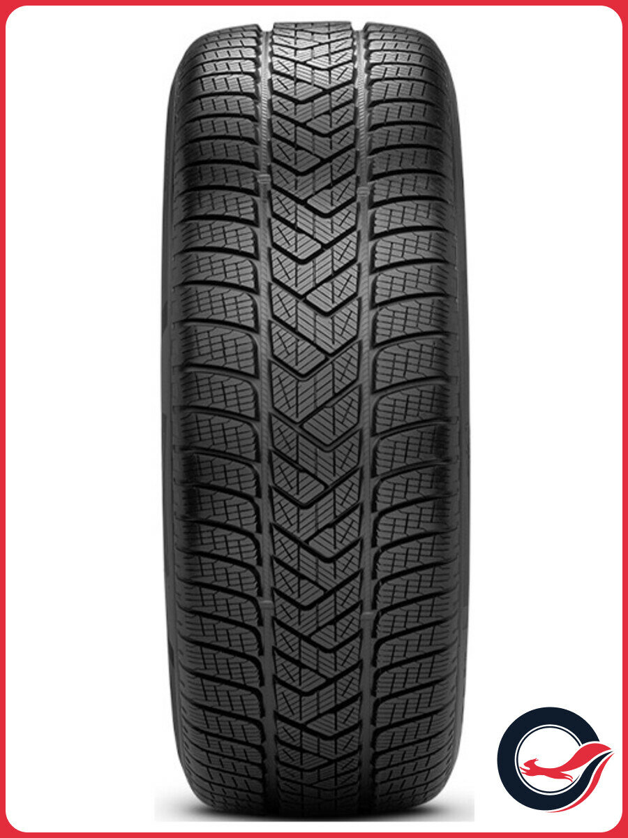 Агрессивный V-образный дизайн протекторного рисунка этой шины появился, благодаря многочисленным натурным тестам, которые были проведены в центральной Европе, Скандинавии и Новой Зеландии. Такая широкая география тестов позволила разработать рисунок протектора с универсальными характеристиками, оптимально подходящий для самых различных типов дорожного покрытия. Характерной чертой нового рисунка протектора является продольное ребро, расположенное в самом его центре. Оно сформировано специально спроектированными блоками V-образной формы, за счет чего шина способна удерживать большое количество снега, что создает лучшее сцепление с дорогой при контакте снег со снегом. Благодаря этому, шина Pirelli Scorpion Winter отлично держит заснеженную дорогу, демонстрируя отличную эффективность разгона и курсовую устойчивость даже при прохождении поворотов и движении на скатах и уклонах. Центральное ребро отделено от остальной части протектора продольными канавками, общее число которых варьируется от одного до четырех в зависимости от типоразмера шины. Эти протекторные элементы осуществляют функцию дренажа, отводя из пятна контакта огромное количество воды и талого снега. Шины с шириной протектора до 255 мм оснащены протекторами с двумя продольными канавками, а более широкие четырьмя. Симметричный рисунок протектора, оснащенный большим количеством раздельных блоков, отличается повышенной эффективностью, благодаря 2500 канавкам, которые улучшают сцепление на любом дорожном покрытии. Отличительной особенностью канавок являются расположенные на ее поверхности ламели, которые позволяют удерживать как можно больше снега, что существенно улучшает сцепление при движении по снегу. Общая длина острых кромок одной комбинации блоков, канавок и ламелей составляет 50 метров. Этот факт легко объясняет исключительную эффективность торможения и разгона на снегу и льду, продемонстрированной этой шиной. Кроме того, такая схема расположения протекторных элементов обеспечивает идеальную сбалансированность продольных и поперечных сил, что имеет решающее значение при прохождении поворотов или при совершении других резких маневров. Новый состав резиновой смеси итальянской шины