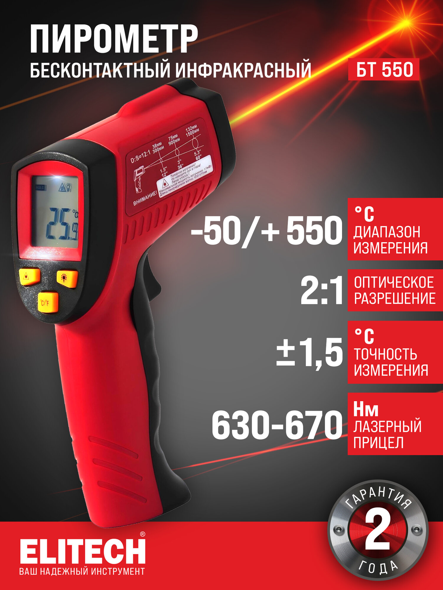 Пирометр ELITECH БТ 550 бесконтактный, инфракрасный / Термометр цифровой / Лазерный измеритель температуры: сравнение цен, характеристики, фото, актуальное наличие и цены.