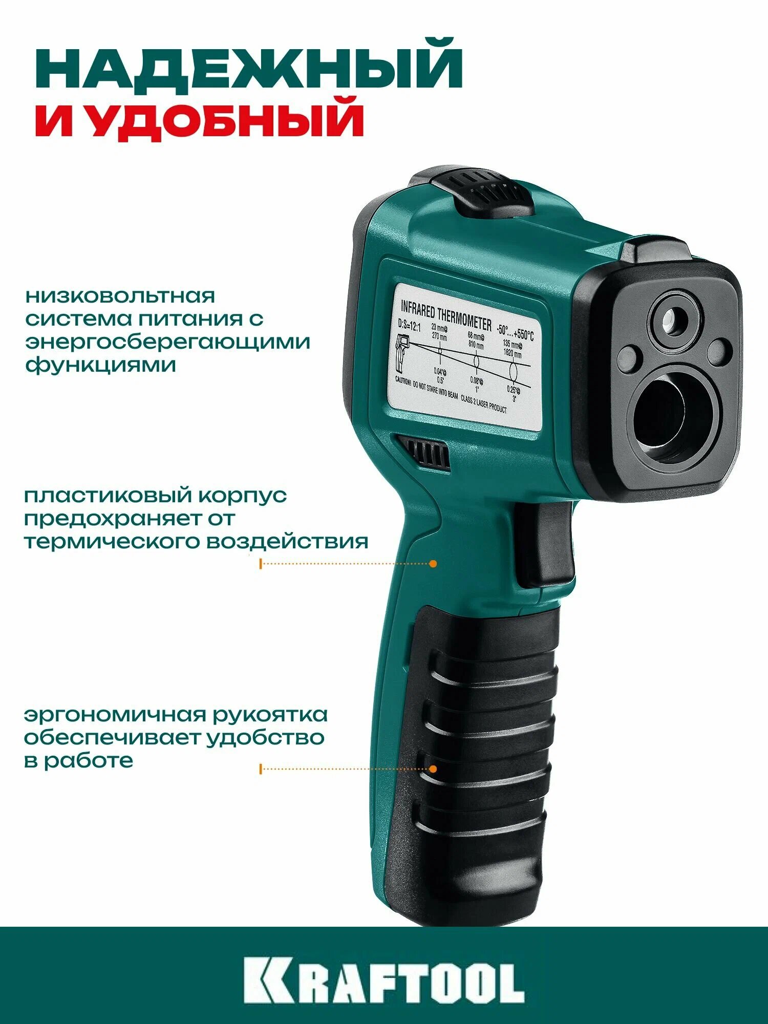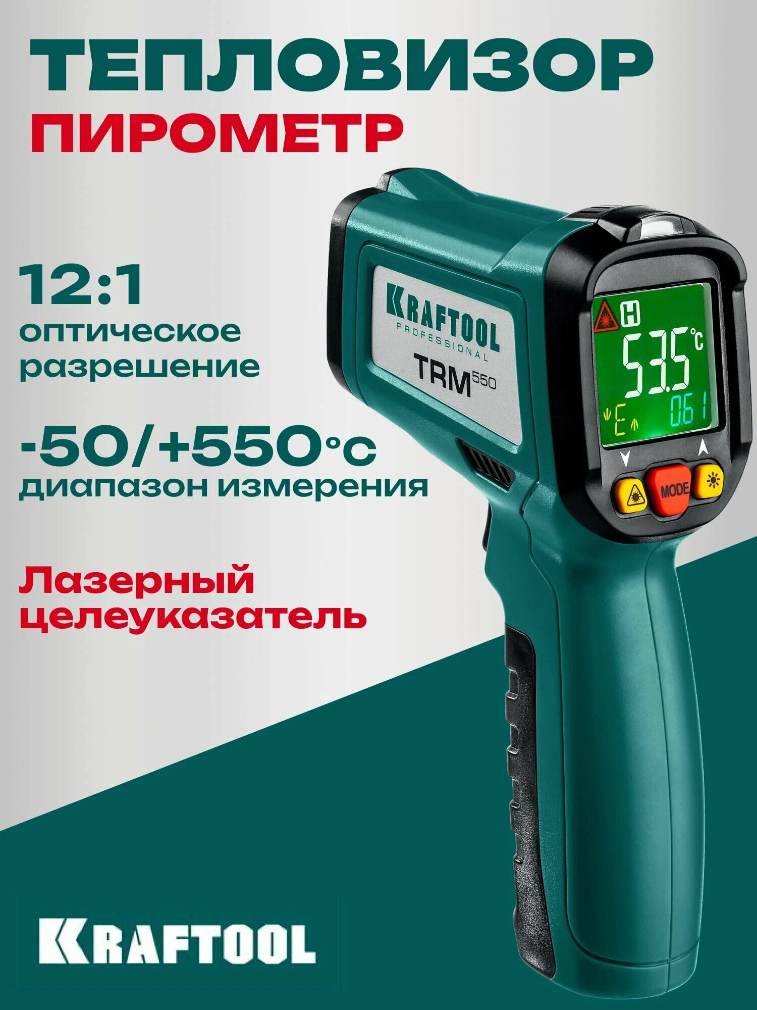 Пирометр инфракрасный, -50°С +550°С, TRM-550, KRAFTOOL 45705-550