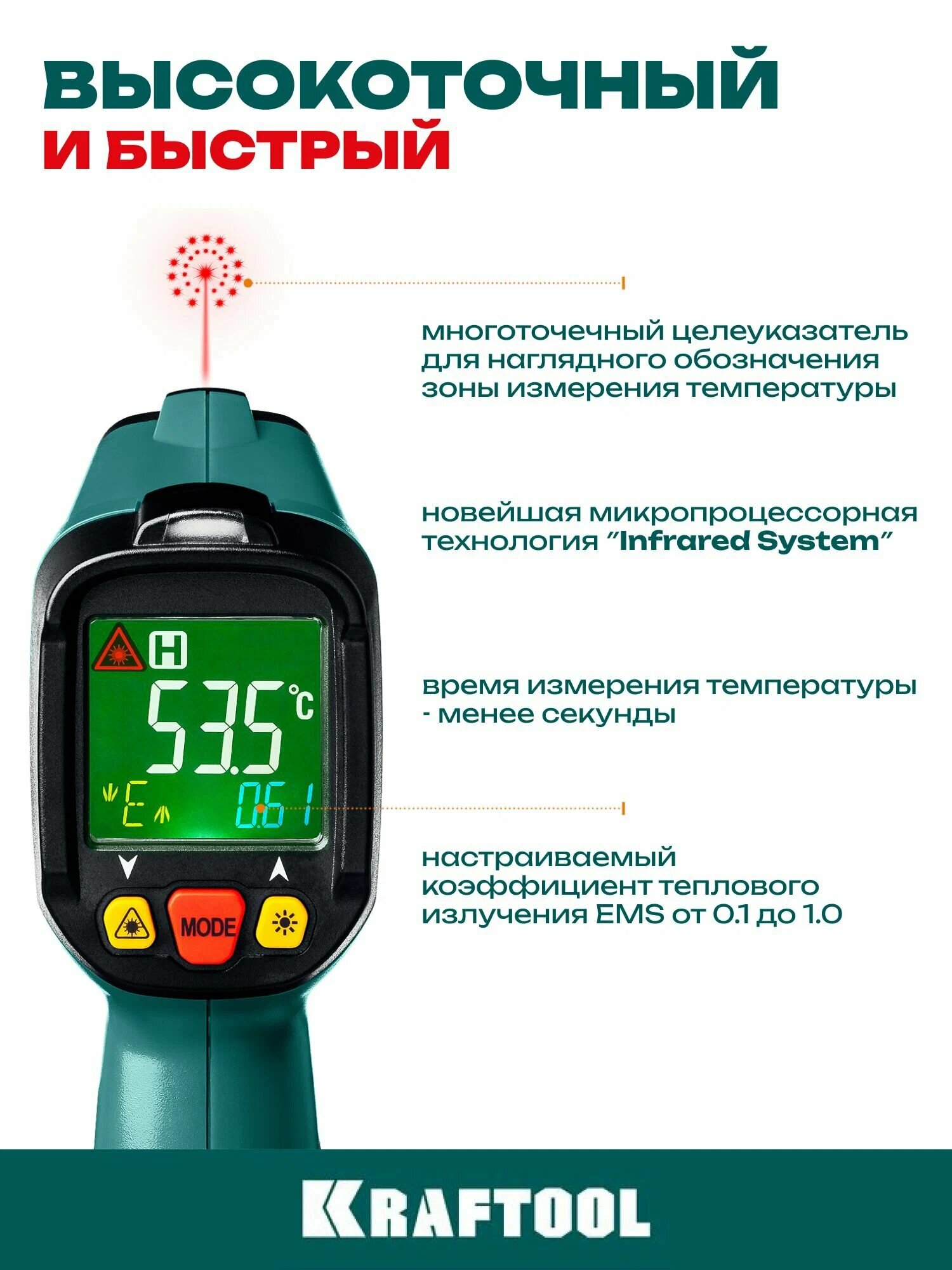 Инфракрасные пирометры KRAFTOOL обеспечивают бесконтактное измерение температуры с высокой точностью. Большое оптическое разрешение позволяет производить измерения на удалении. Корпус пистолетной формы с удобным курком и наведением точечного целеуказателя на объект.