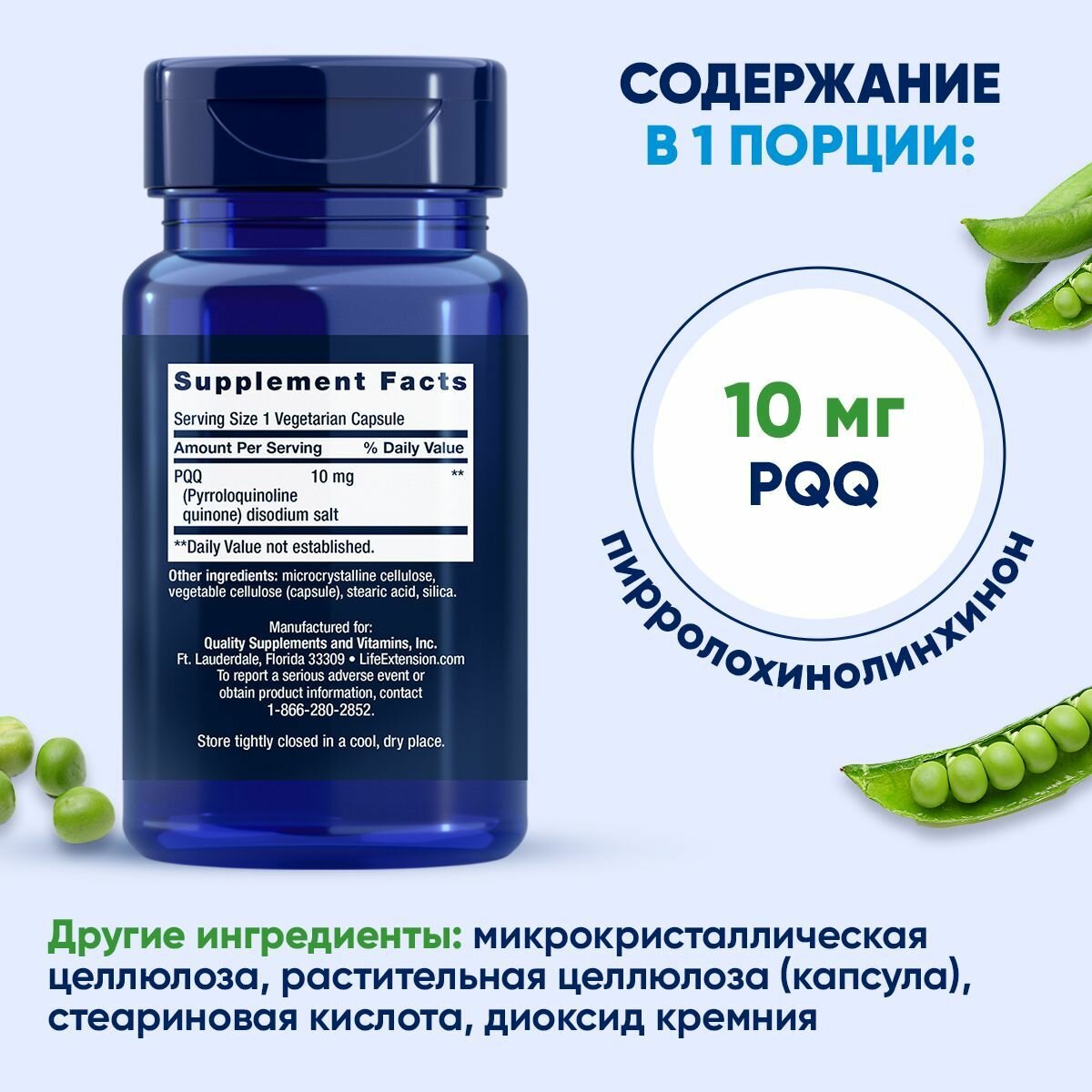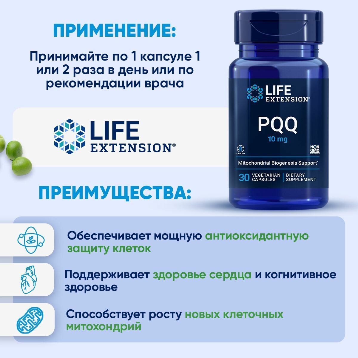 Пирролохинолинхинон PQQ 10 мг Life Extension PQQ 30 капсул, Мощный антиоксидант, для поддержания клеточной энергии: сравнение цен, характеристики, фото, актуальное наличие и цены.