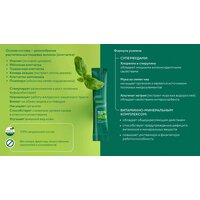 | Состав | Инулин (из корня цикория), яблочная клетчатка, пшеничная клетчатка, камедь акации (экстракт смолы дерева), базилик лист, клетчатка шиповника, мята перечная, хлорелла, мука из семян чиа, псиллиум (оболочка семян подорожника), спирулина, альгинат натрия (экстракт морских водорослей), минеральный комплекс (железо, йод, калий, кальций, магний, марганец, медь, селен, цинк), витаминный комплекс (С, В3, В5, В6, В1, В9, Н, В12), подсластитель (эритрит, сукралоза). |