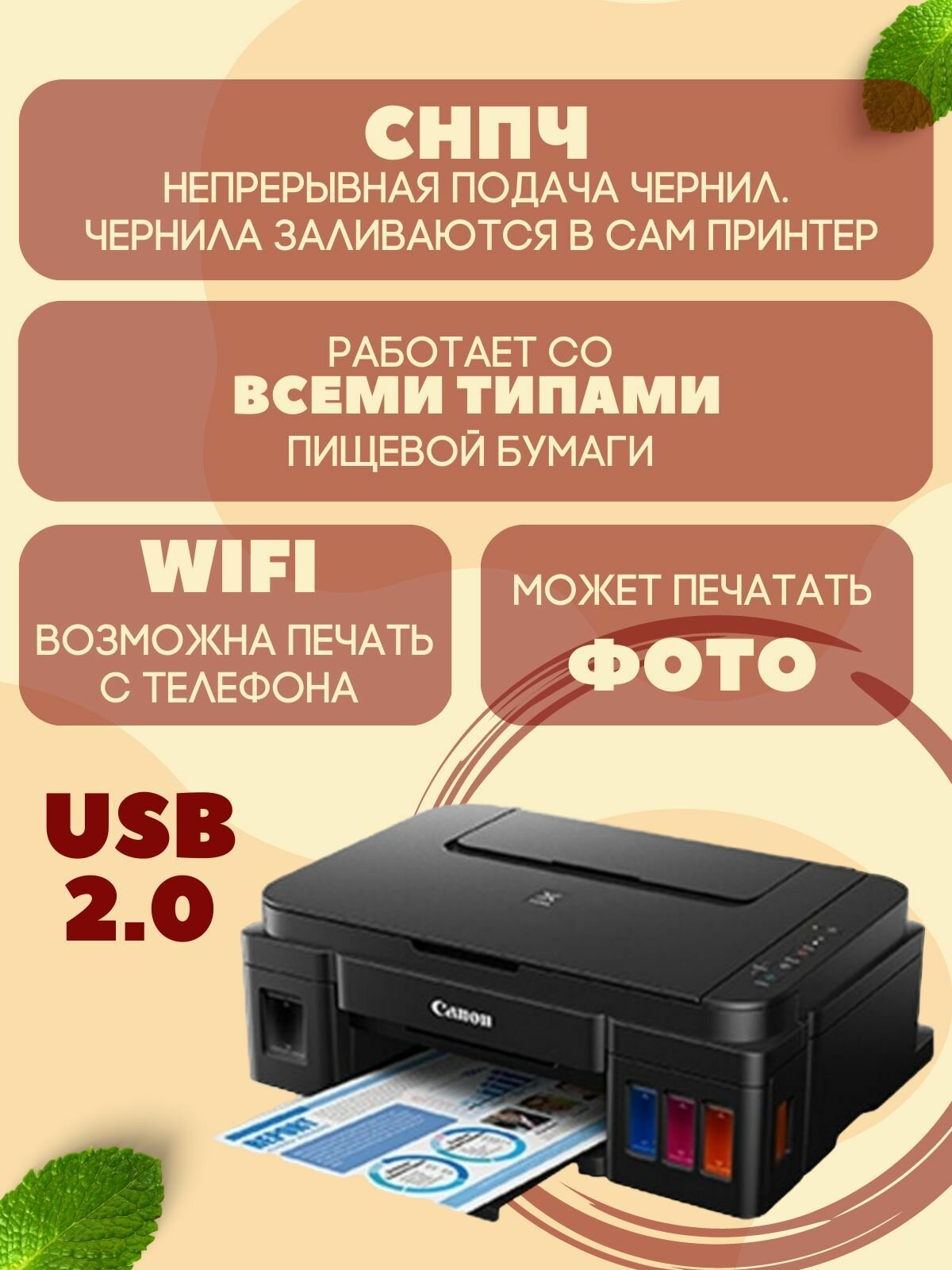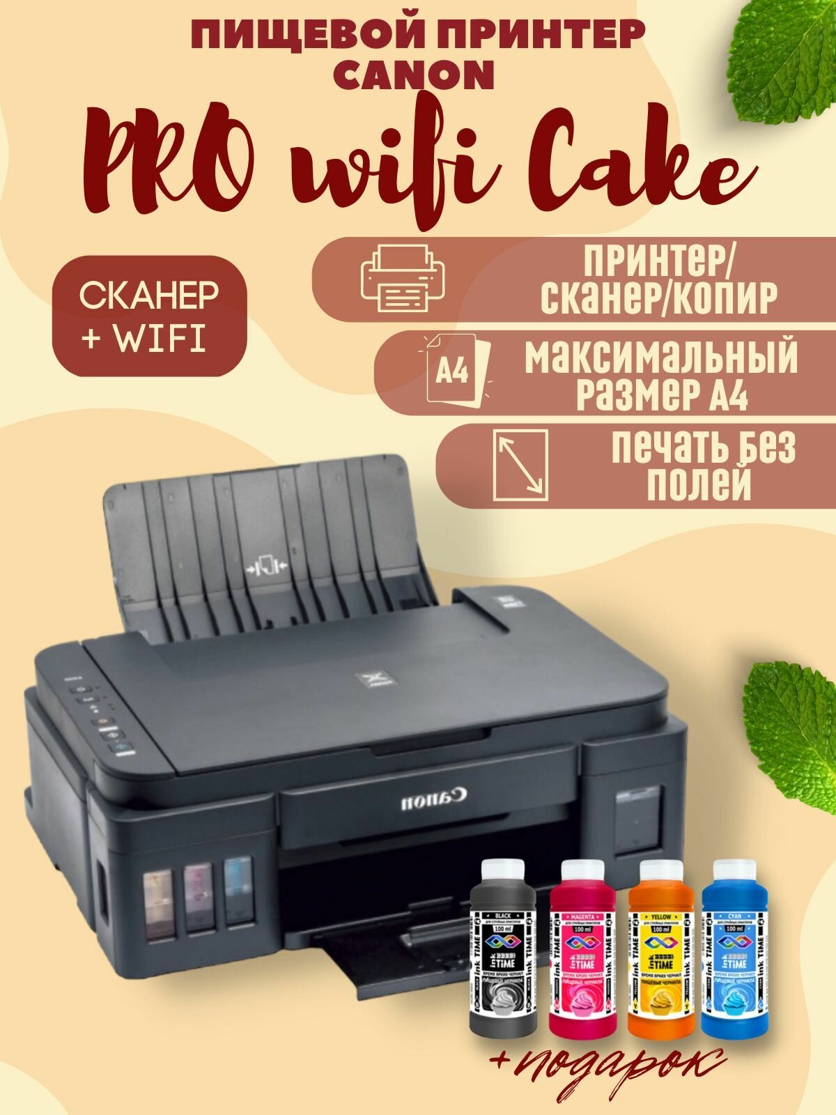 Внимание: данный пищевой принтер создан на базе принтера Canon (G34), так как устройство новое, вместе с ним есть гарантийный талон, но компания Canon не допускает использование сторонних чернил, в связи с этим, сервисный центр компании Canon скорей всего откажет при обращении в случае гарантийного ремонта. Гарантию фирма burstenstore не предоставляет.