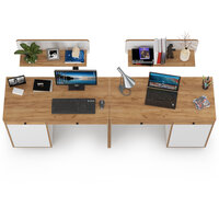 Купить Письменные столы с навесными полками для двоих детей Вуди, цвет белый премиум/дуб крафт золотой, ШхГхВ 220х52,7х170 см, универсальная сборка с доставкой по всей России. Письменные столы с навесными полками для двоих детей Вуди, цвет белый премиум/дуб крафт золотой, ШхГхВ 220х52,7х170 см, универсальная сборка: сравнение цен, характеристики, фото, актуальное наличие и цены.