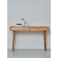 Лаконичный и удобный стол Fusion в стиле мидсенчури станет атмосферным дополнением вашего кабинета. На высоких тонких опорах, с двумя выдвижными ящиками, выразительной фрезеровкой корпуса.