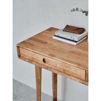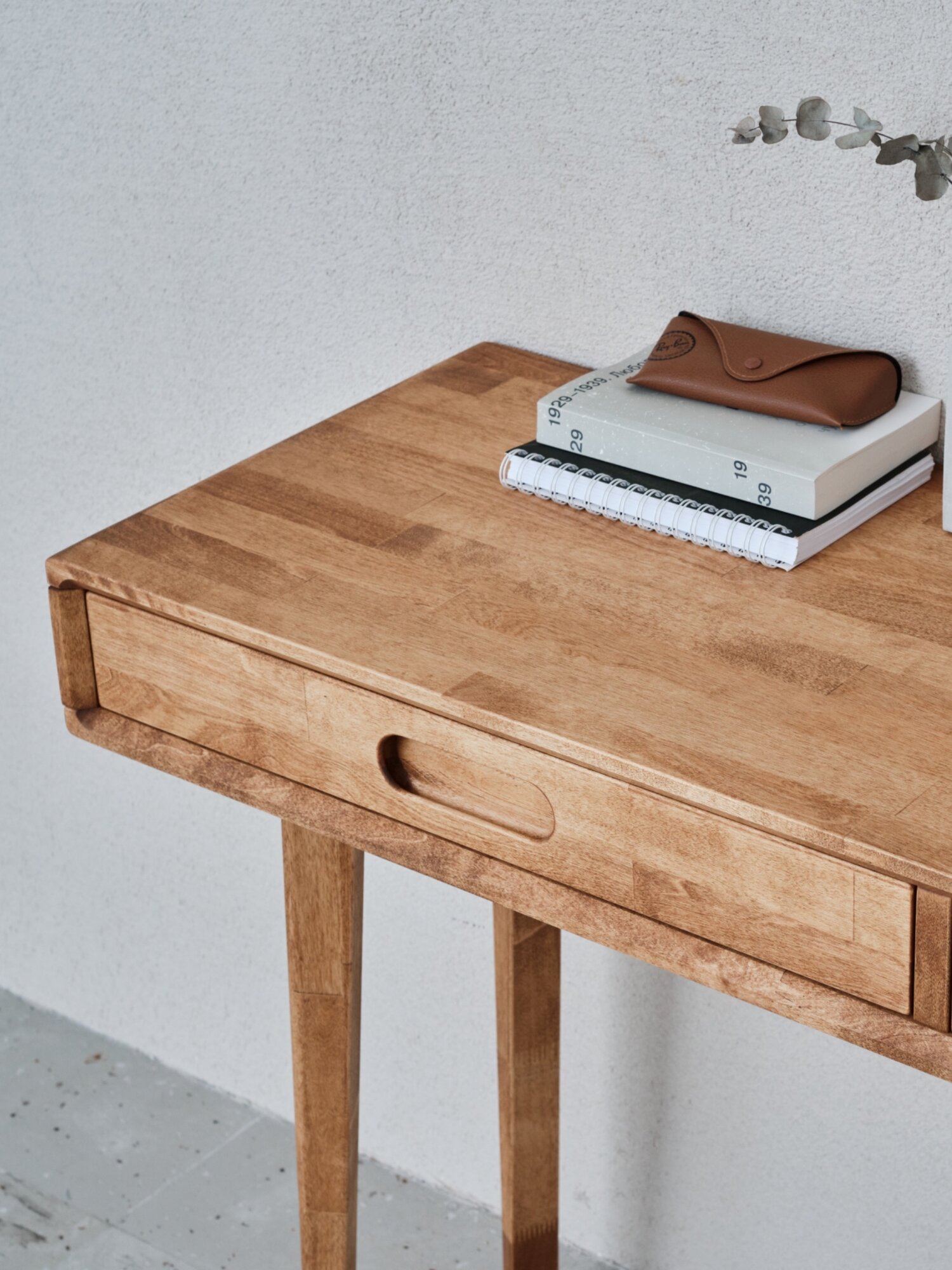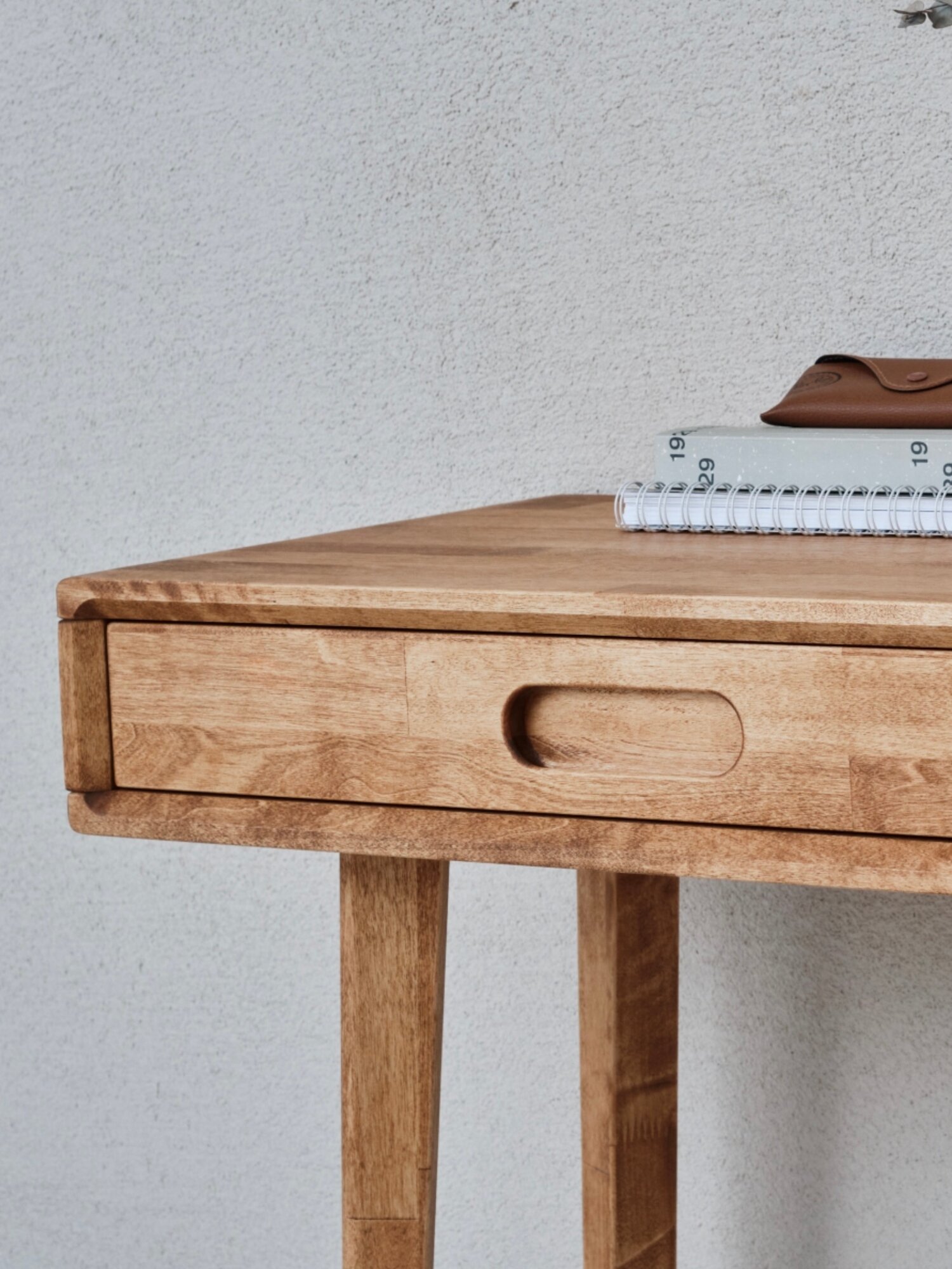 ✔ Особенности письменного стола Fusion: 1) Ширина столешницы 60 см. Длина на выбор - 100 или 120 см. Много рабочего пространства 2) Корпус и фасады стола изготовлены из массива уральской берёзы 3) Внутри ящики облицованы берёзовой фанерой в тон корпуса. Задняя панель — также из берёзовой фанеры 4) Овальные ручки фрезы на ящиках