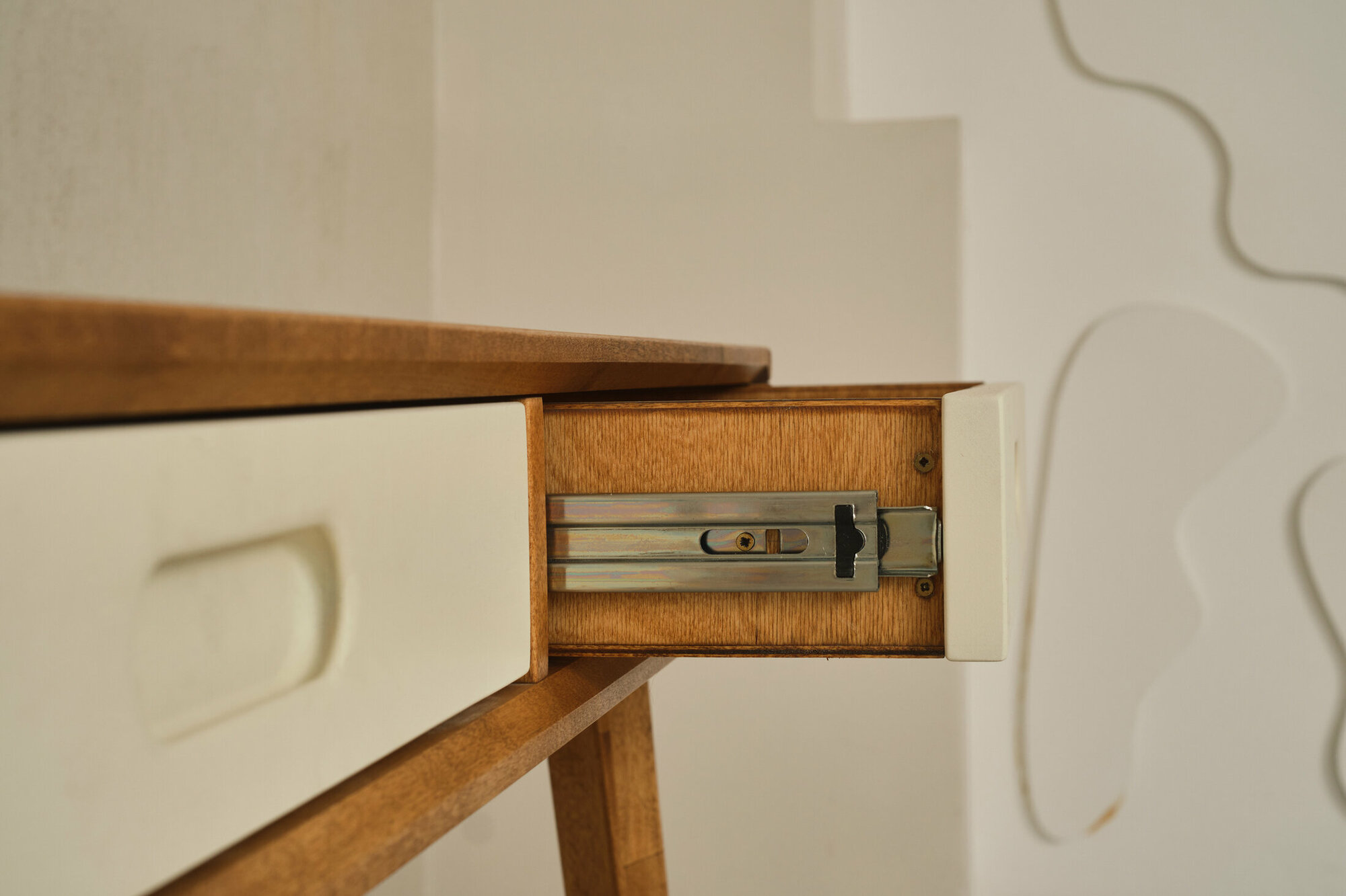 Внутри ящики облицованы берёзовой фанерой в тон корпуса. Задняя панель — также из берёзовой фанеры.