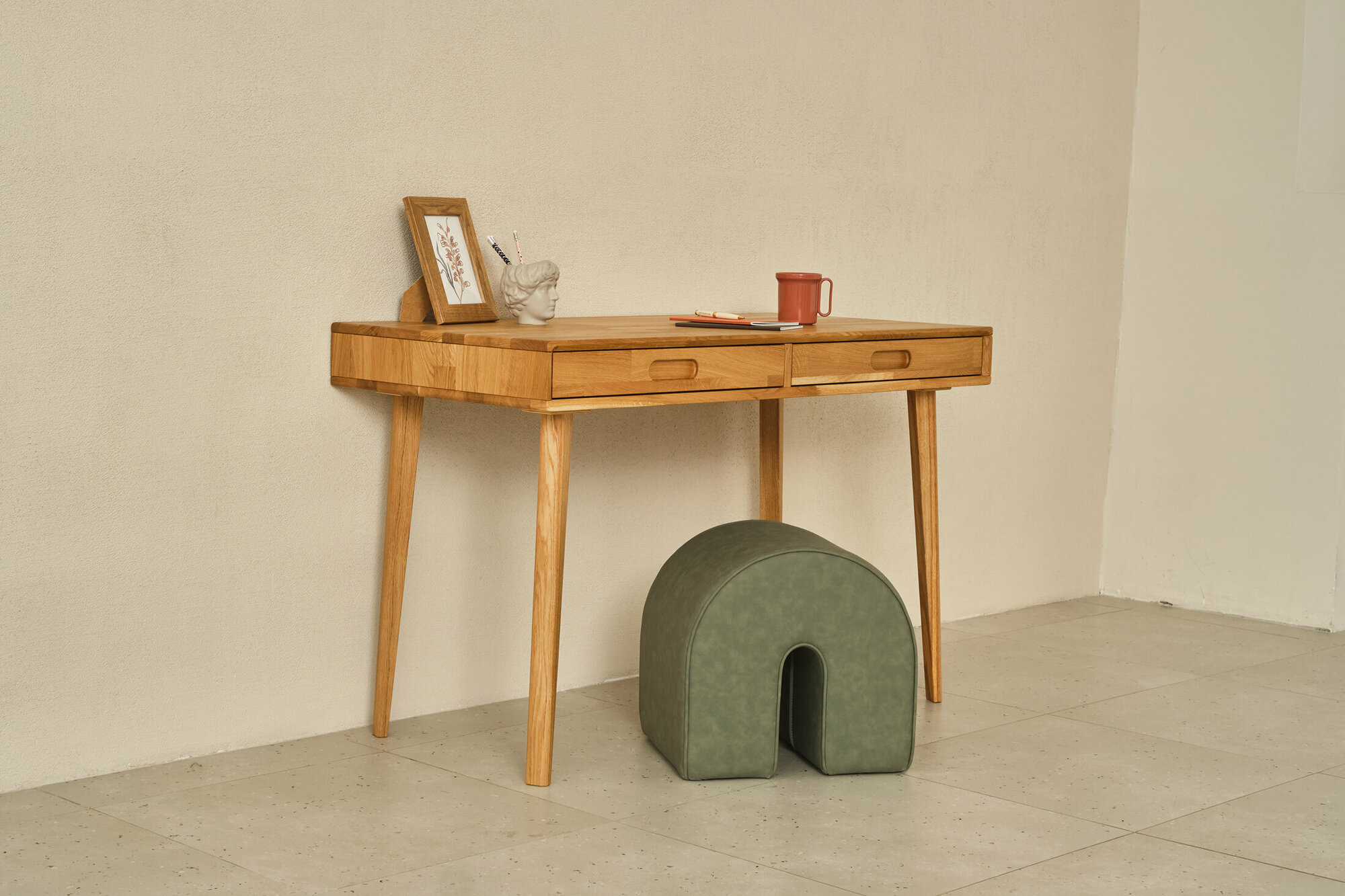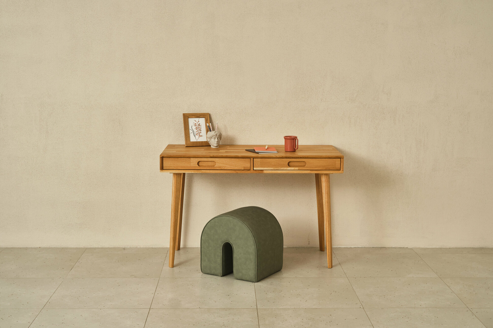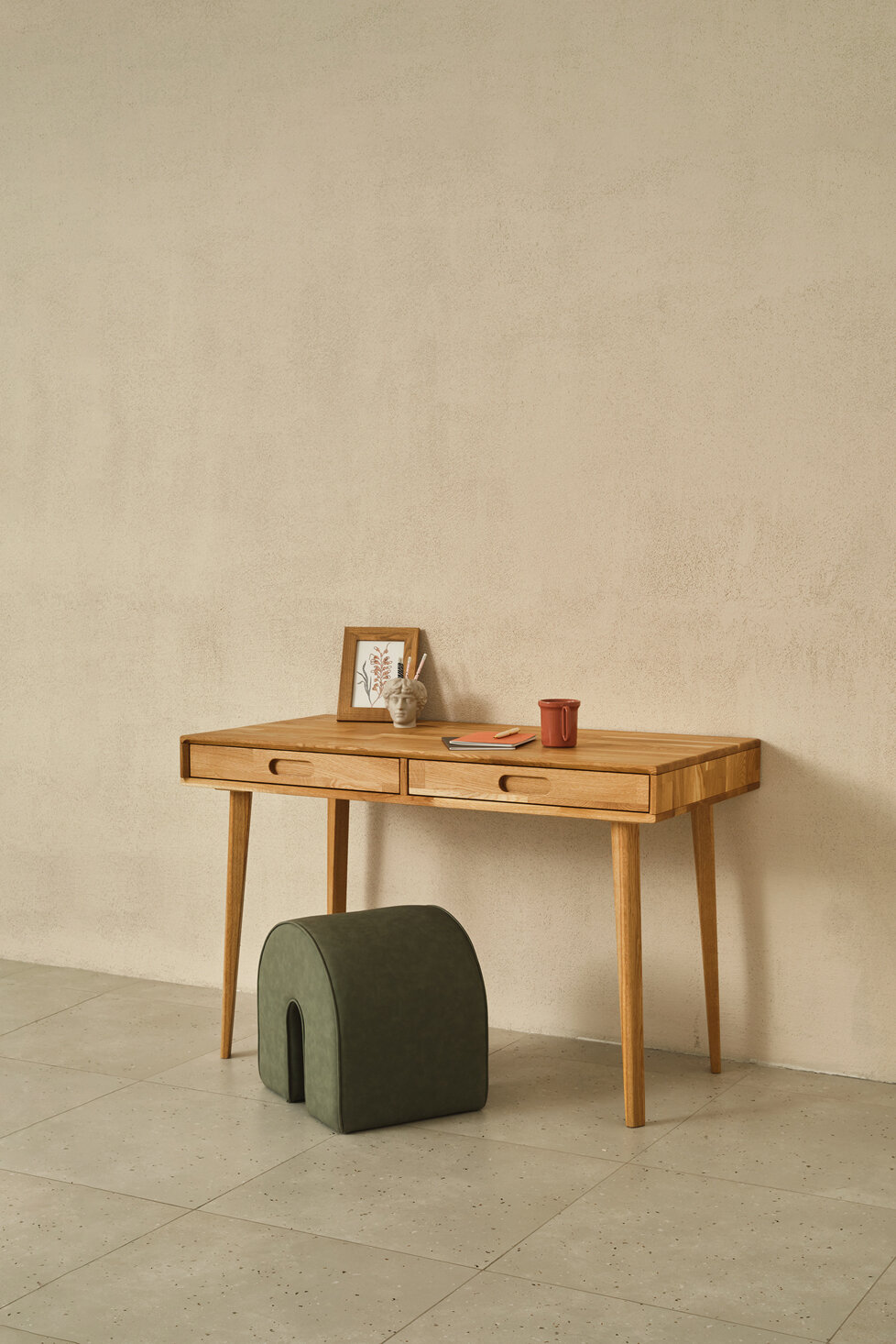 Лаконичный и удобный стол Fusion в стиле мидсенчури станет атмосферным дополнением вашего кабинета. На высоких тонких опорах, с двумя выдвижными ящиками, выразительной фрезеровкой корпуса. Он может быть использован как для работы, так и творчества