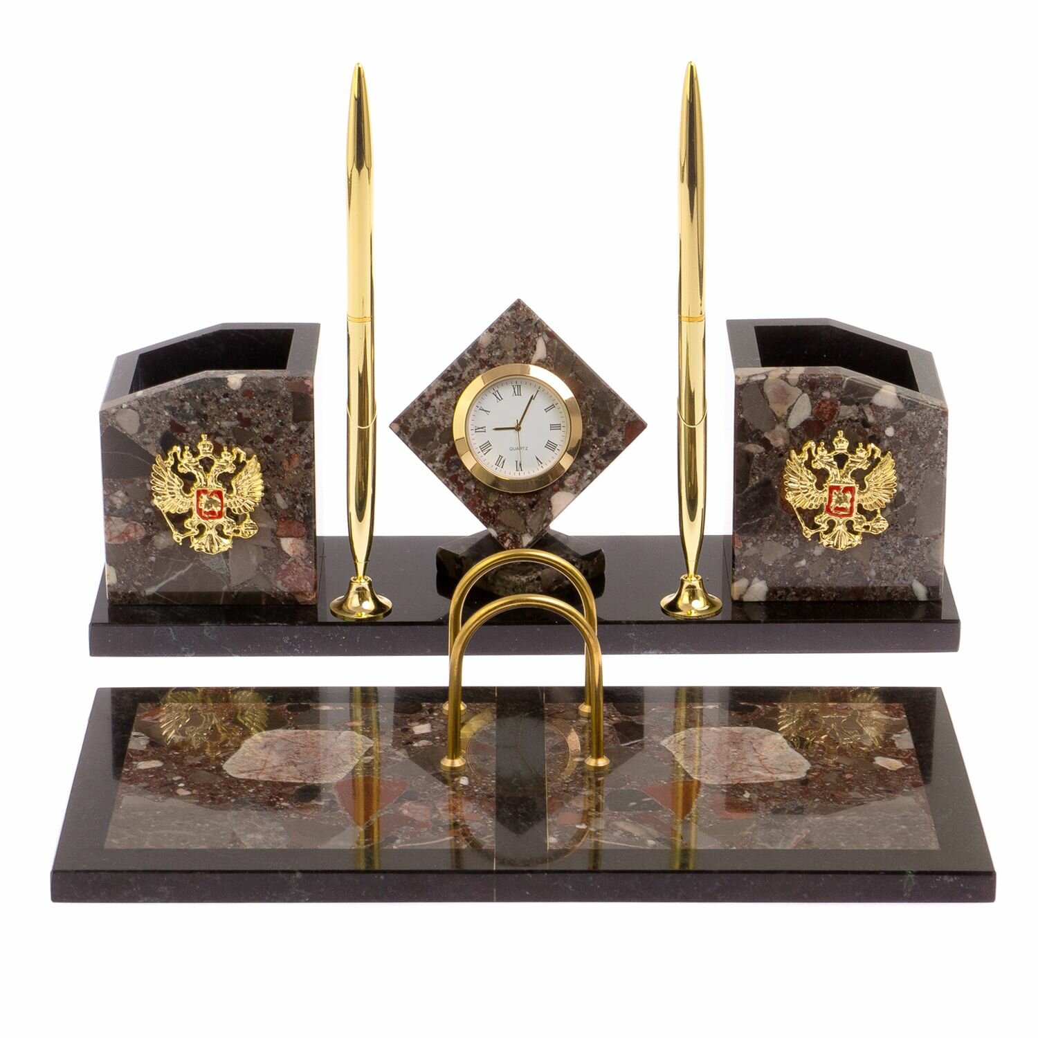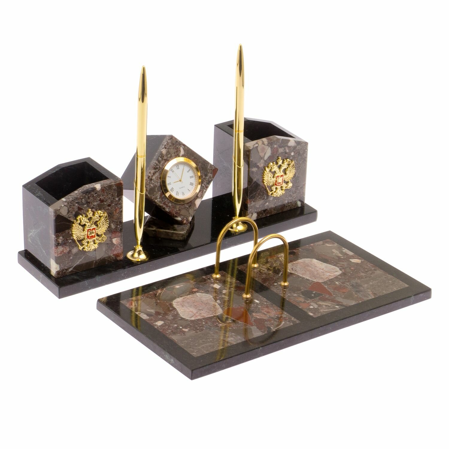 Письменный набор "Куб" из конгломерата размером часы 30,5х8х11 см, календарница 27х14,5х5 см и весом 3500 г.
