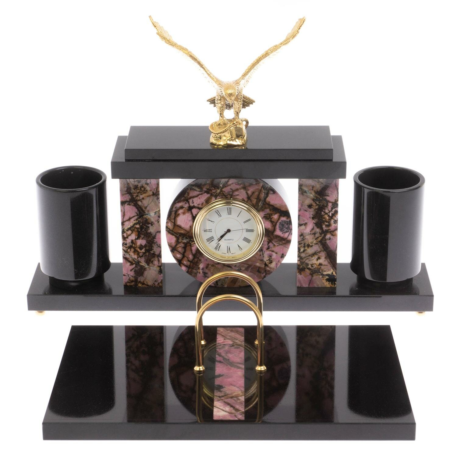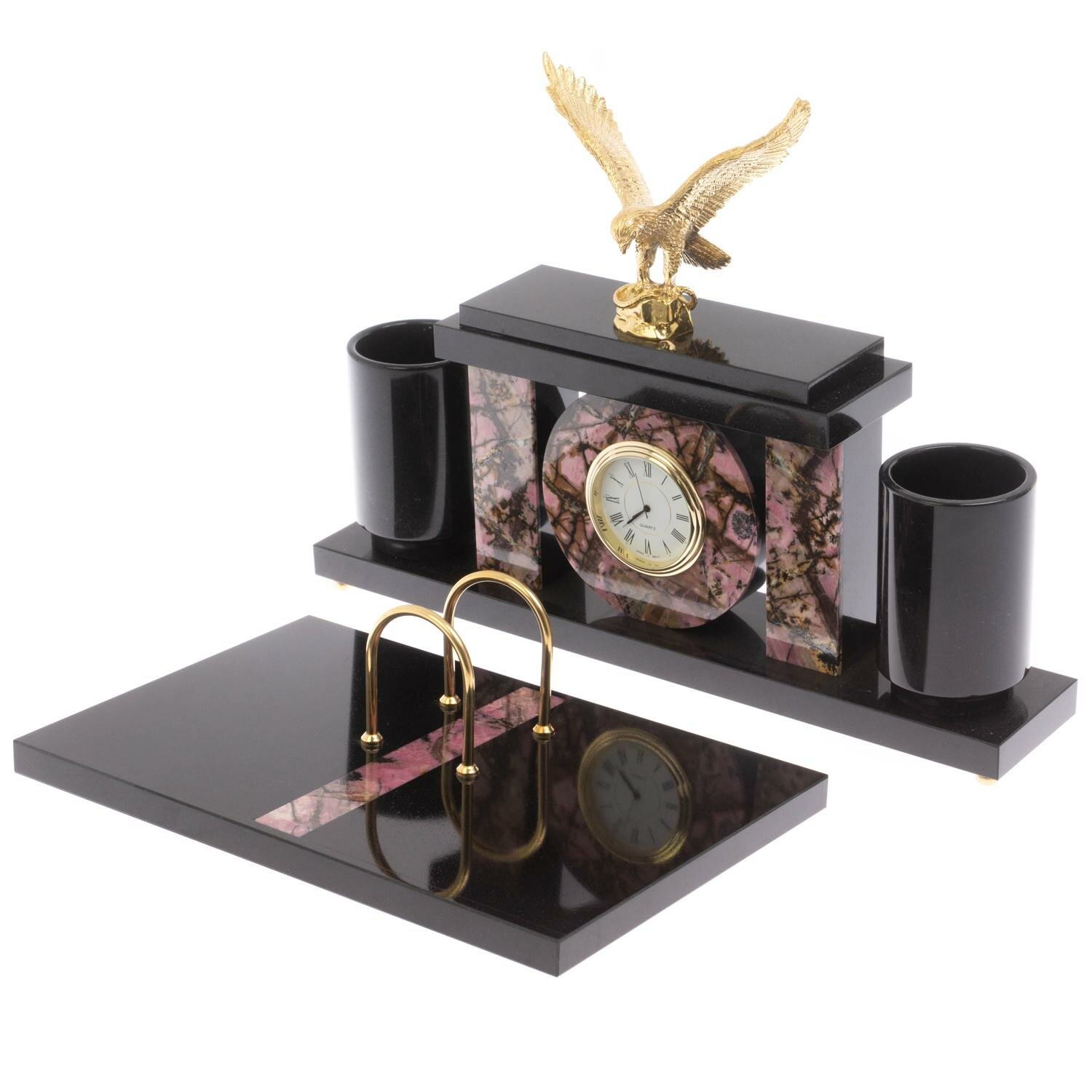 Купить Письменный набор с часами «Орел» из родонита 129565 с доставкой по всей России. Письменный набор с часами «Орел» из родонита 129565: сравнение цен, характеристики, фото, актуальное наличие и цены.