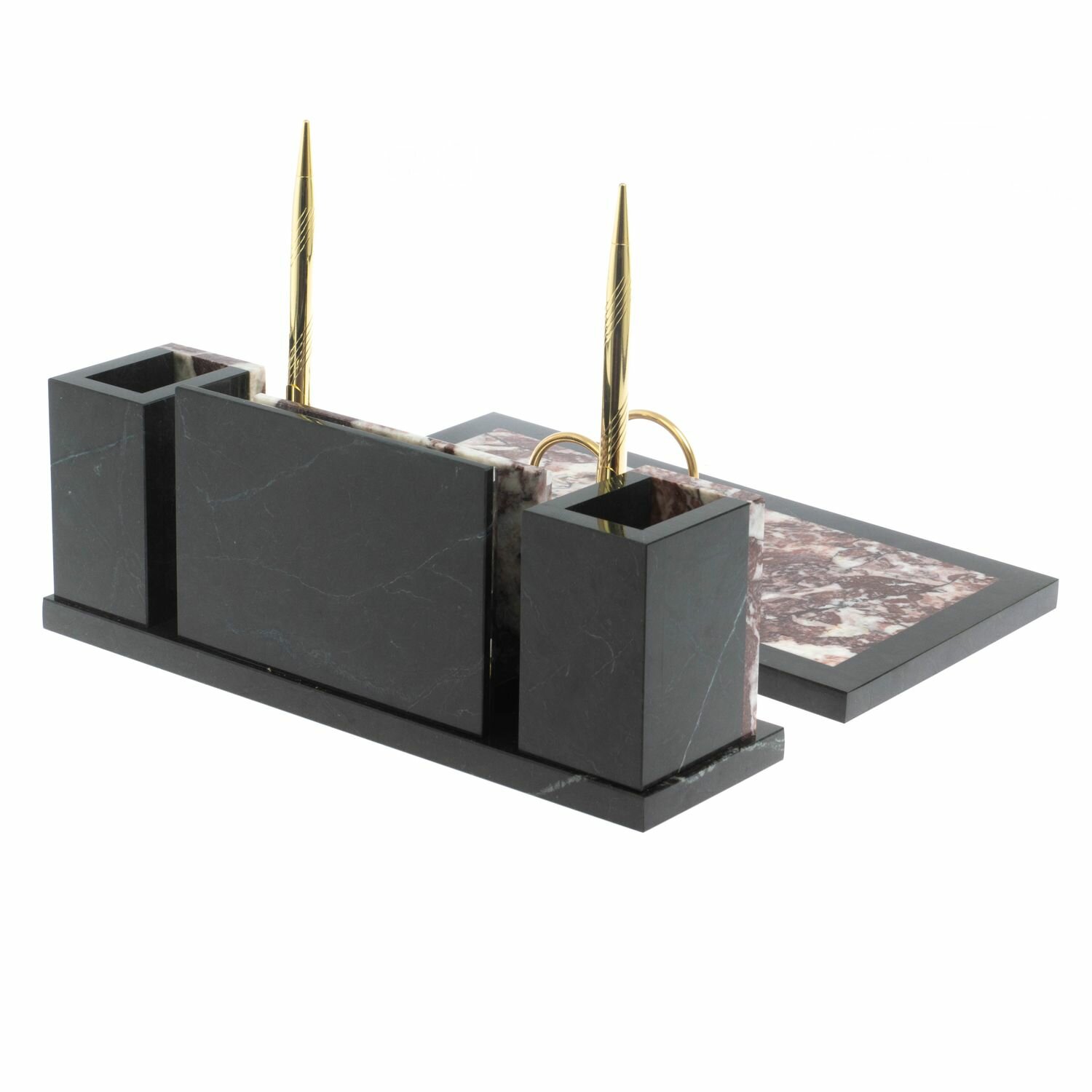 Письменные наборы из мрамора имеют стильный дизайн и вдобавок они сделаны вручную из натуральных и экологичных материалов.