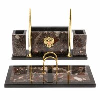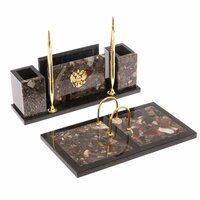 Письменный набор "Советник" с Гербом РФ из конгломерата размером часы 30х8х11 см, календарница 27,5х14,5х2 см и весом 3250 г.