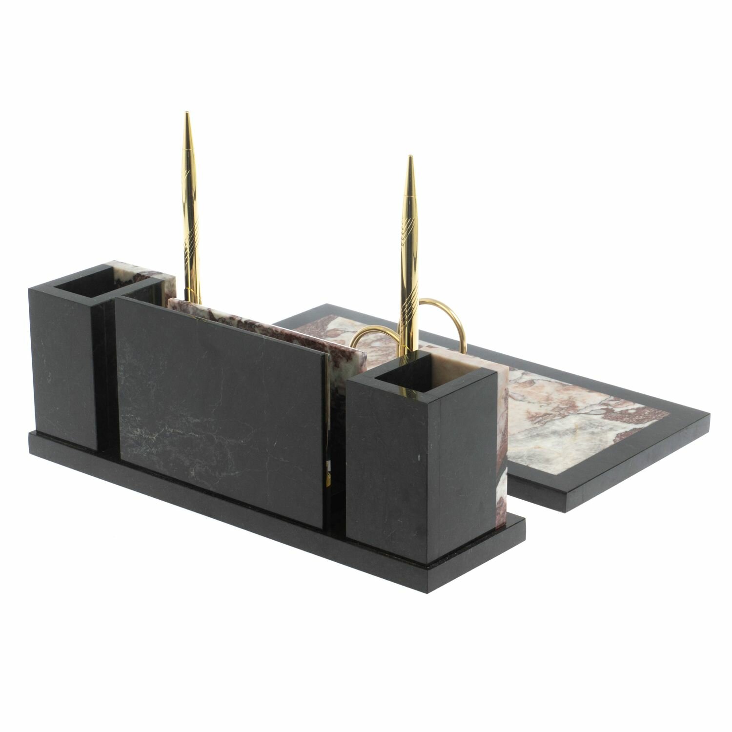 Письменные наборы из мрамора имеют стильный дизайн и вдобавок они сделаны вручную из натуральных и экологичных материалов.