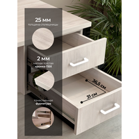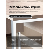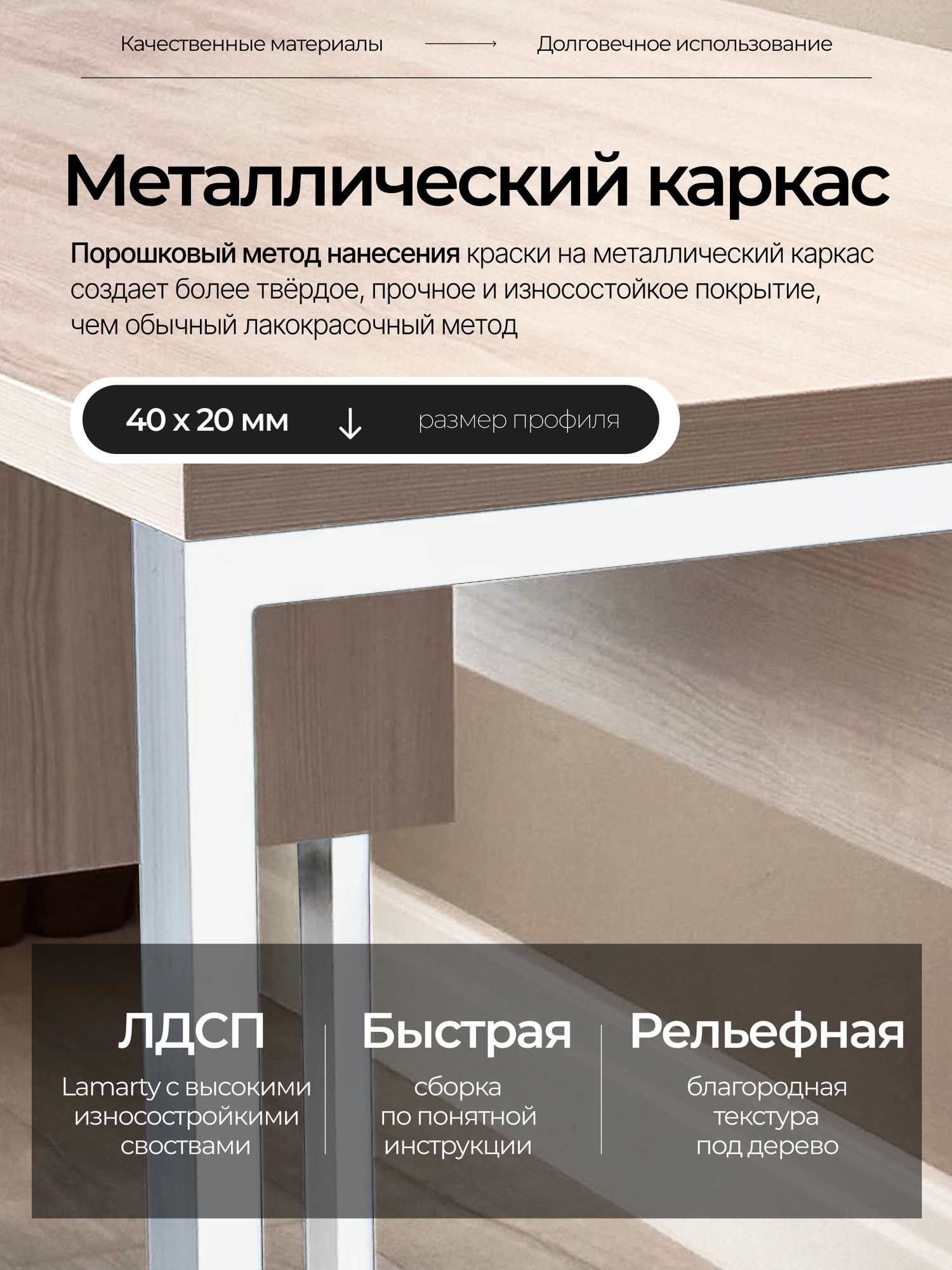 Столешница изготовлена из высококачественного ЛДСП компании Lamarty толщиной 26 мм, края обработаны ПВХ кромкой, толщиной 2мм. Поверхность столешницы обладает устойчивостью к воздействию моющих средств, стойкостью к стиранию, царапинам и выцветанию.