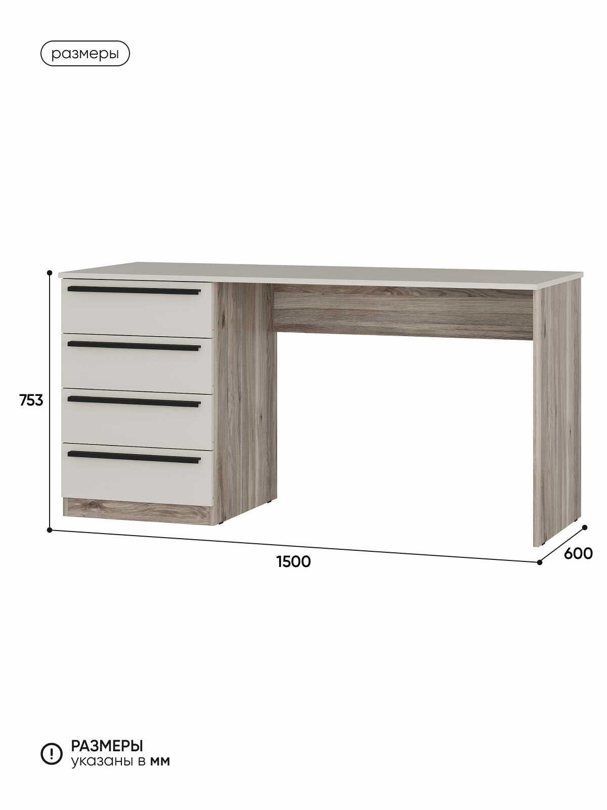 Письменный стол ARNIKA «Урбан», дуб смоки, ЛДСП, с ящиками, 150×75,3×60 см: сравнение цен, характеристики, фото, актуальное наличие и цены.
