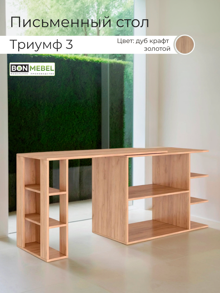 Купить Письменный стол BONMEBEL Триумф — 3, ЛДСП, дуб крафт золотой, с тумбой с доставкой по всей России. Письменный стол BONMEBEL Триумф — 3, ЛДСП, дуб крафт золотой, с тумбой: сравнение цен, характеристики, фото, актуальное наличие и цены.