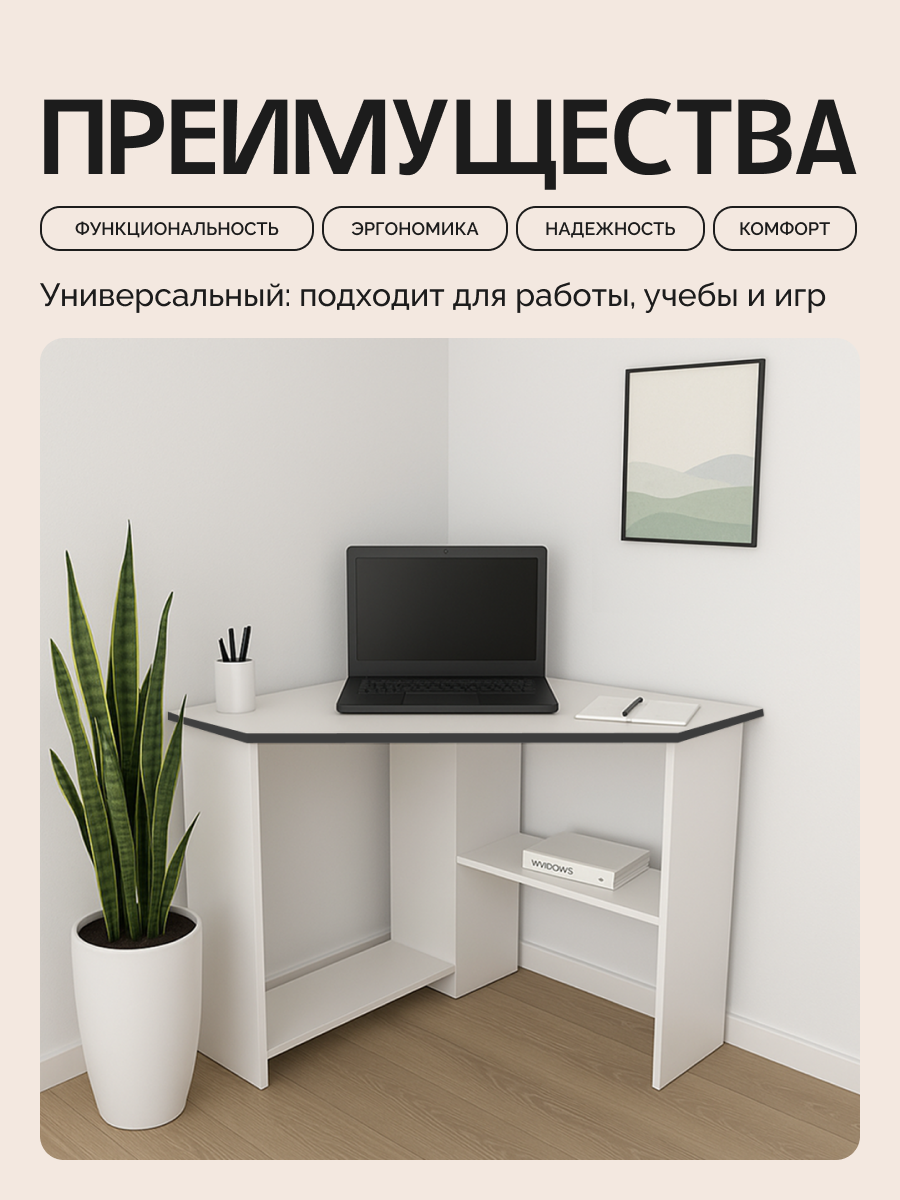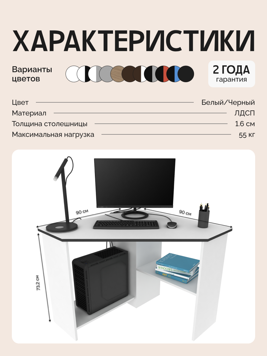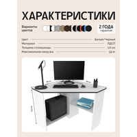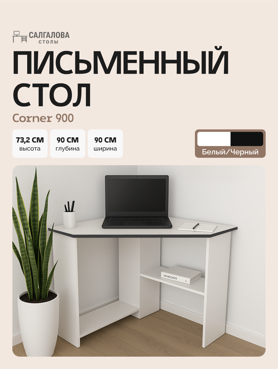 Стол письменный для школьника, компьютерный, угловой с полками Corner 900 Белый/Черный, 90*90 см.: сравнение цен, характеристики, фото, актуальное наличие и цены.