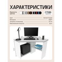 Стол письменный, компьютерный, угловой с полками Corner 900 Белый/Серый, 90*90 см.: сравнение цен, характеристики, фото, актуальное наличие и цены.