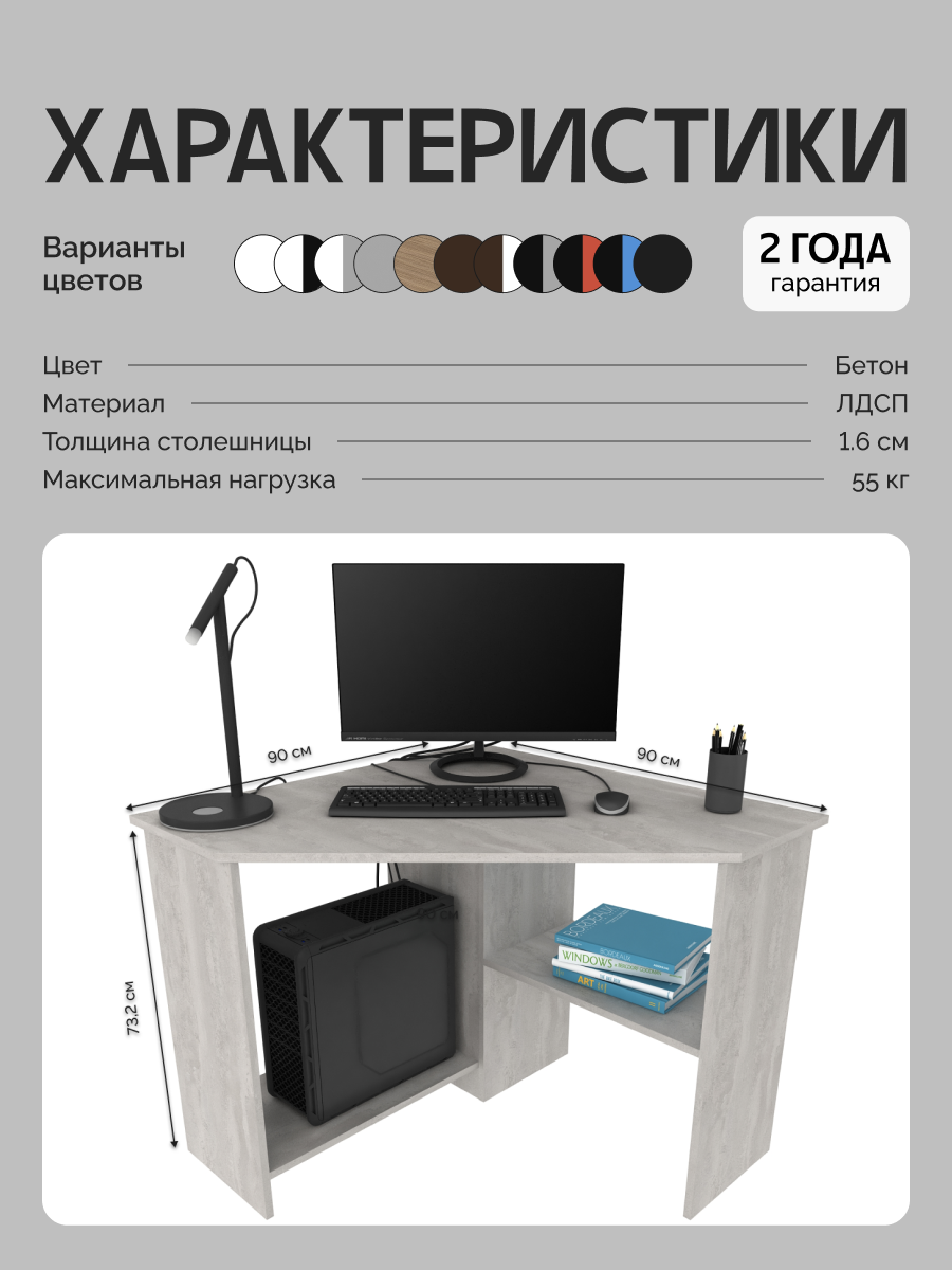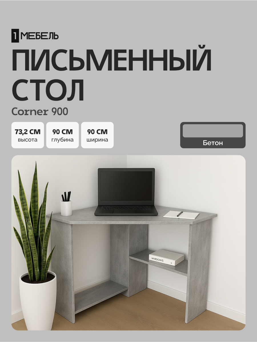 Стол письменный для школьника, компьютерный, угловой с полками Corner 900 Бетон, 90*90 см.: сравнение цен, характеристики, фото, актуальное наличие и цены.