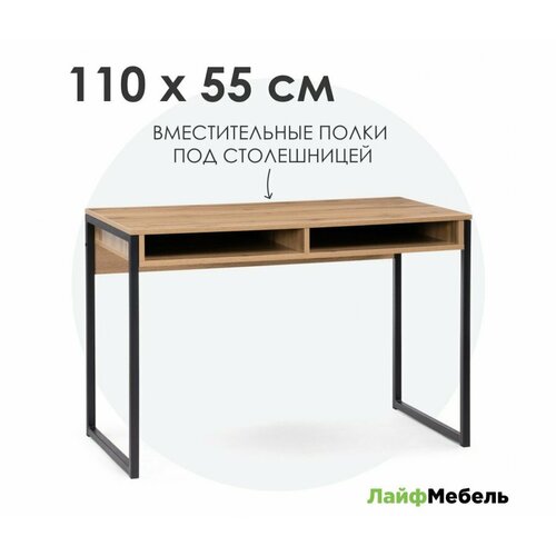 Расстояние между ножек: 105 см. Высота до полки: 64 см. Размер одной полки (Ш х Г х В): 50 х 53 х 8 см. Толщина столешницы: 1,5 см. Ширина - 110 см; Высота - 75 см; Глубина - 55 см; Наличие колес - не предусмотрены; Ящики - не предусмотрены; Полки - в комплекте; Полка под клавиатуру - не предусмотрена; Подставка для системного блока - не предусмотрена; Надстройка - не предусмотрена; Материал корпуса - металл; Материал столешницы - ЛДСП; Цвет - натуральный; Страна - Россия; Гарантия - 12 мес; Вес - 23 кг; Объем - 0.08 куб. м;