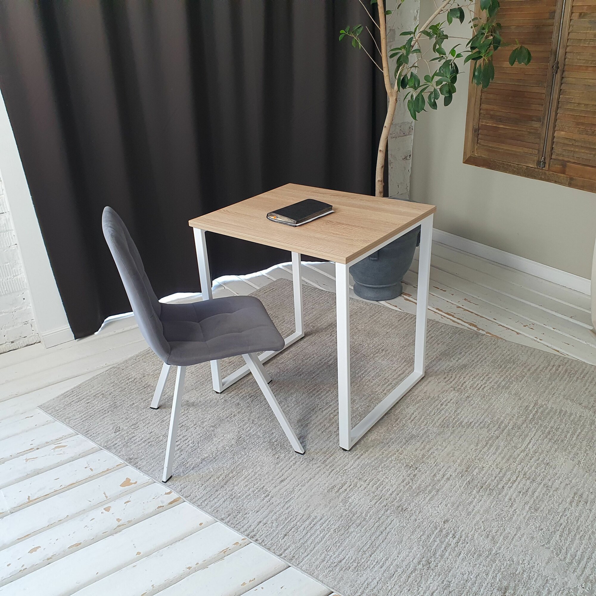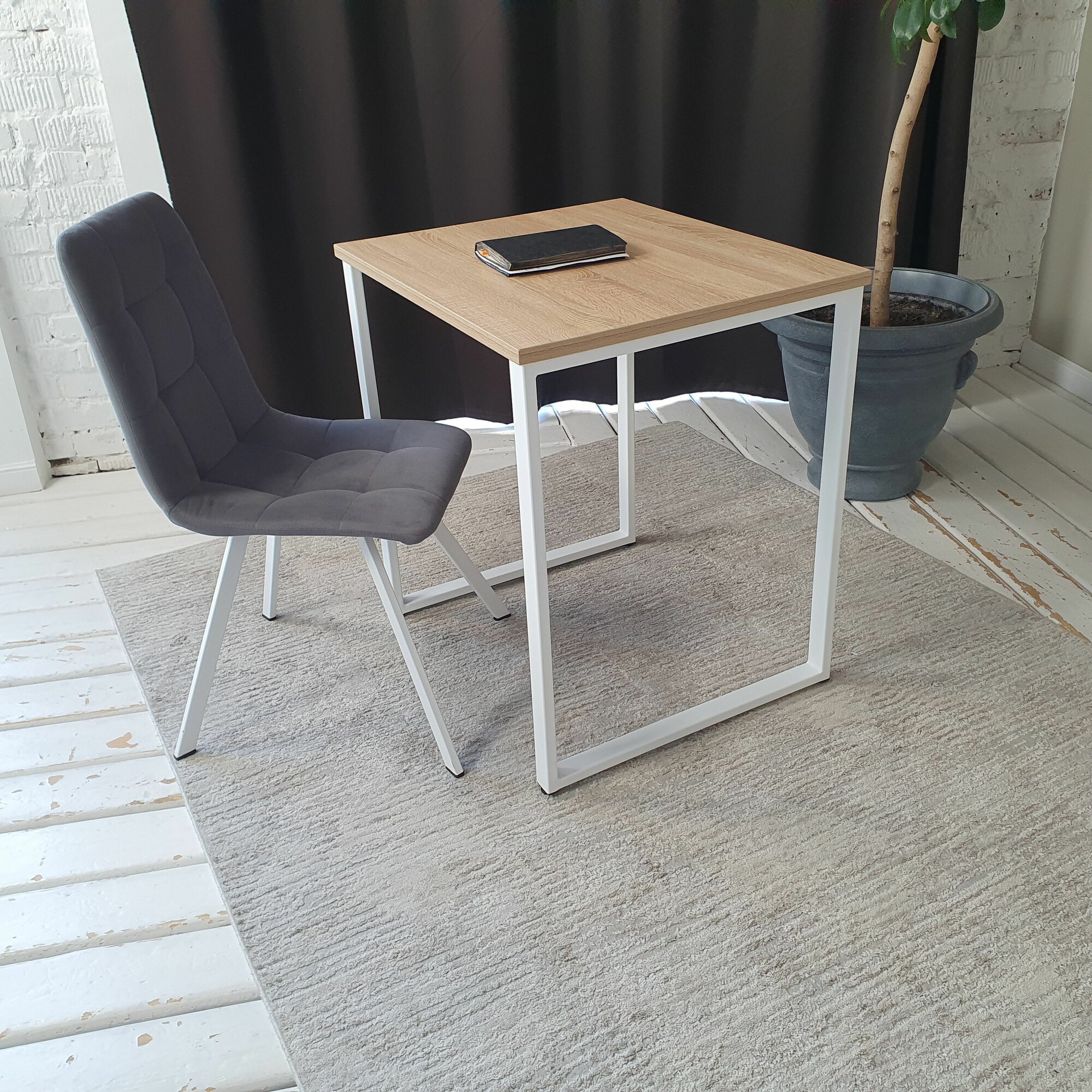 Письменный стол лофт 70*60 см. Дуб Сонома. Белые ножки. 22 мм Столешница