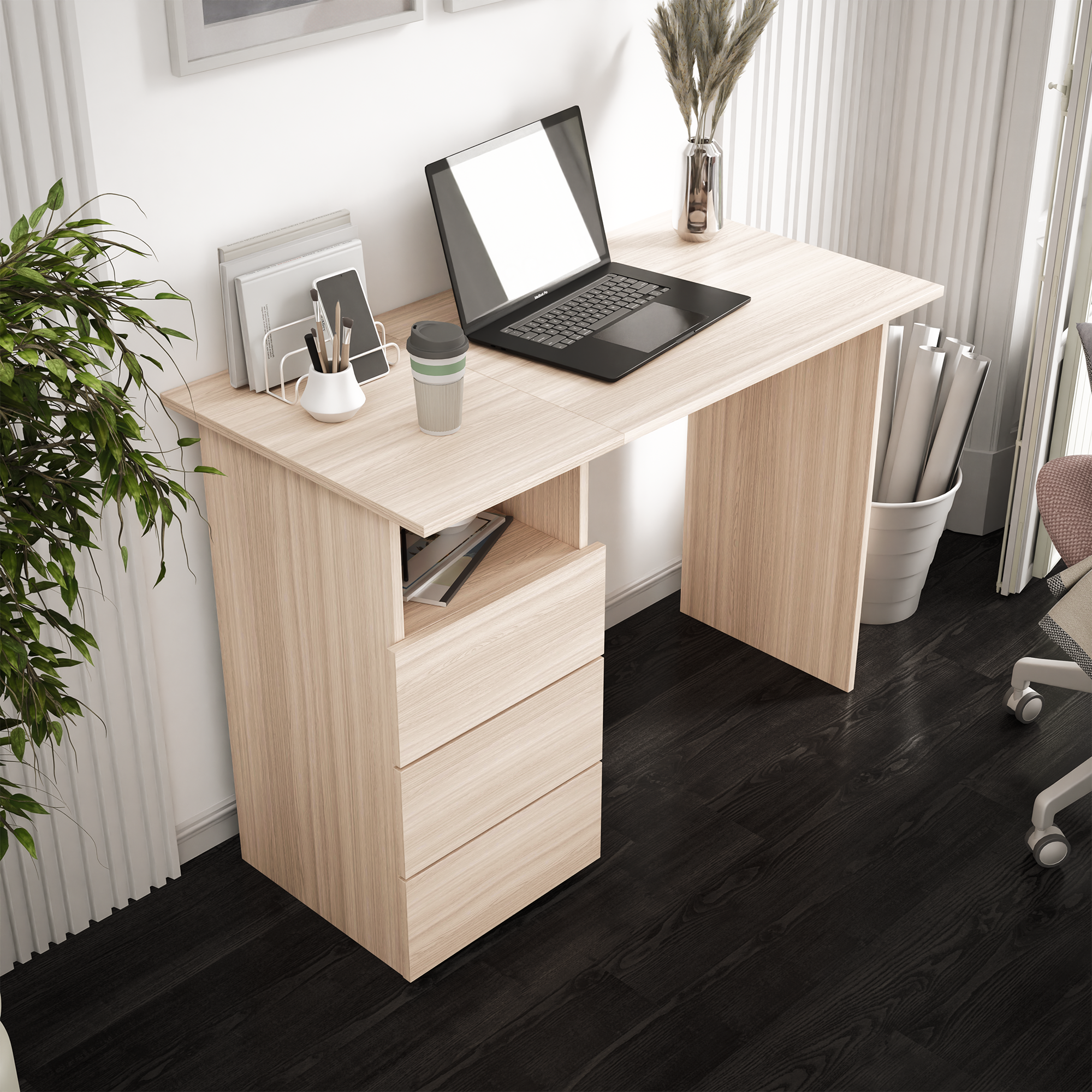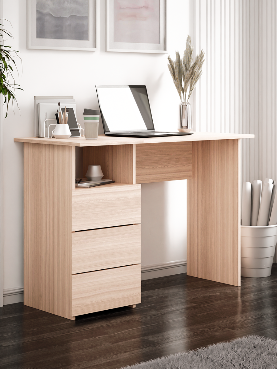 Купить Письменный стол MFMaster Vitto-31, шимо светлый, ЛДСП, 3 ящика, с тумбой с доставкой по всей России. Письменный стол MFMaster Vitto-31, шимо светлый, ЛДСП, 3 ящика, с тумбой: сравнение цен, характеристики, фото, актуальное наличие и цены.