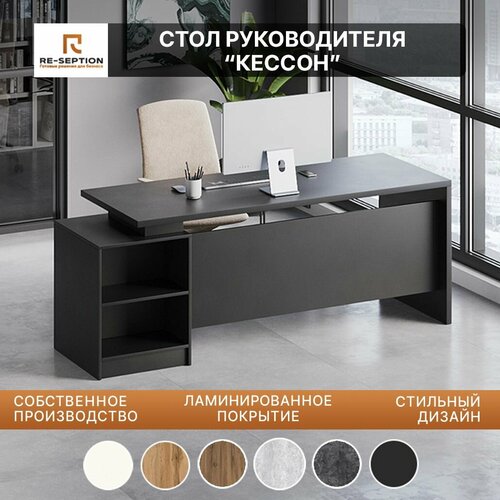 Письменный стол руководителя Кессон 200х75х70 см. Цвет - черный+черный. Представляем вам премиум стол руководителя, письменный стол, который станет неотъемлемой частью вашего офиса или домашнего кабинета. Компьютерный стол выполнен из высококачественных материалов, что гарантирует его долговечность и надежность. Кроме того, стол имеет стильный дизайн и отлично впишется в деловой интерьер. Стол руководителя премиум оснащен всем необходимым для комфортной работы: просторной столешницей, полками для хранения документов и других вещей. Благодаря этому вы сможете удобно расположиться за столом и иметь все необходимое под рукой. Не упустите возможность приобрести премиум стол руководителя/письменный стол и создать комфортное рабочее место, которое будет радовать вас своей функциональностью и элегантным дизайном на протяжении многих лет.