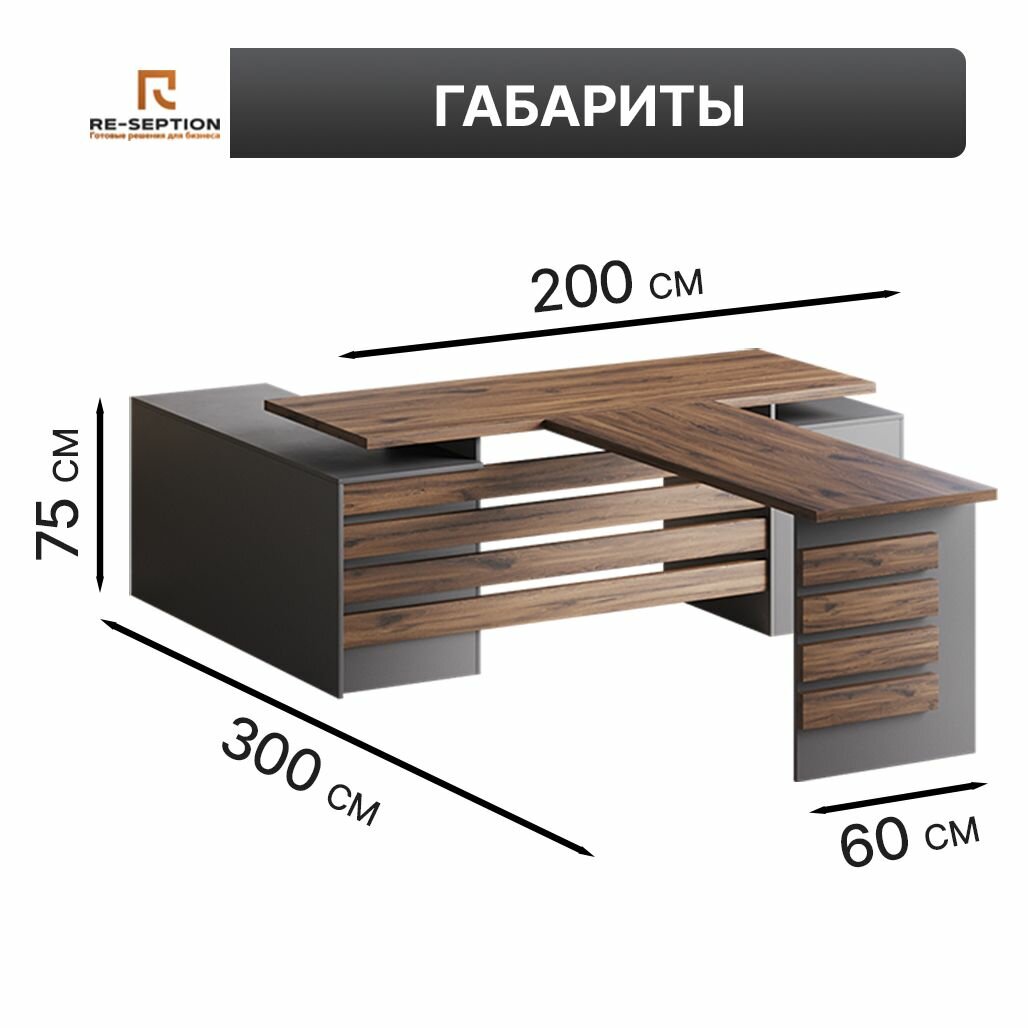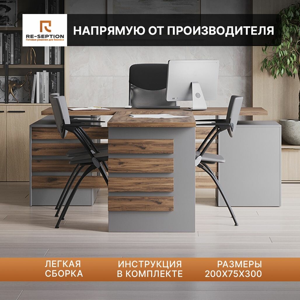 | Цвет товара | письменный стол с брифом для переговоров парламент, серый шифер/юстус, 200х75х300 |