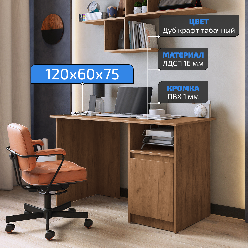 Письменный стол WARHOUSE «Триумф» дуб крафт табачный с тумбой, 1200х600х750 мм.: сравнение цен, характеристики, фото, актуальное наличие и цены.