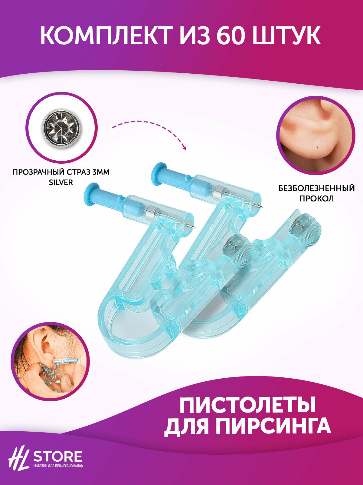 Пистолет для пирсинга одноразовый голубой пистолет для прокола ушей с украшением — 60 шт: сравнение цен, характеристики, фото, актуальное наличие и цены.