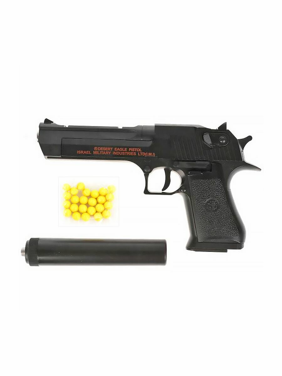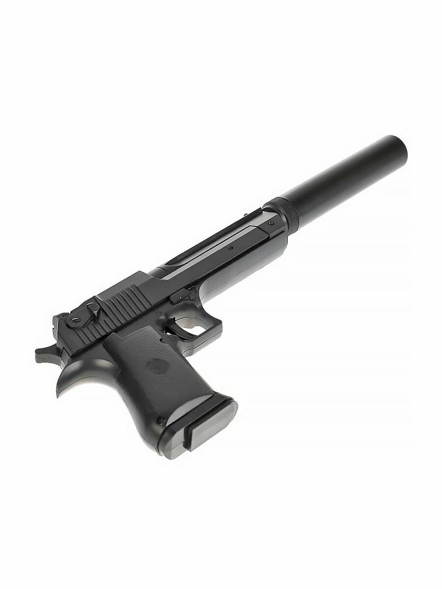 Купить Пистолет игрушечный пневматический (металл, съемный магазин, глушитель, пульки), 1B00276 с доставкой по всей России.