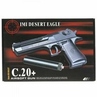 Пистолет металлический детский с глушителем Desert Eagle «Черный орел» C20+ (500 пулек в комплекте): сравнение цен, характеристики, фото, актуальное наличие и цены.