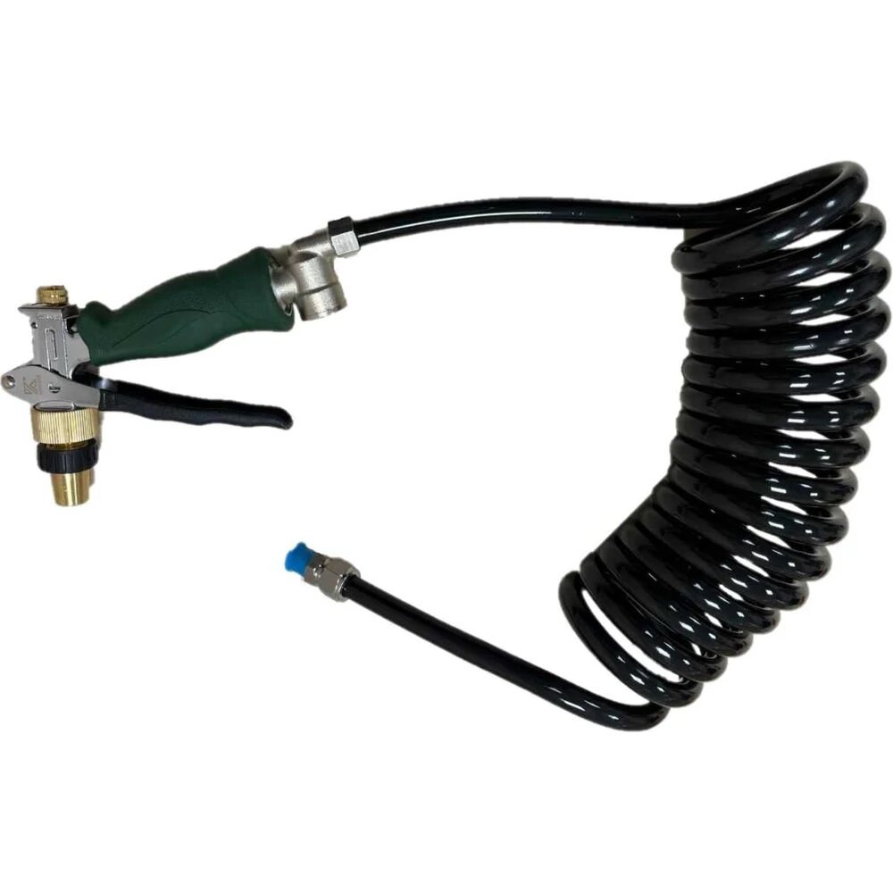 Пистолет для подачи СОЖ. Корпус из нержавеющей стали Aisi 304 Быстроразъемным штуцером 1/4 Диаметр сопла 3 мм Витой полиуретановой трубкой длиной 4 м Гарантированное сопротивление давлению 1 МПа