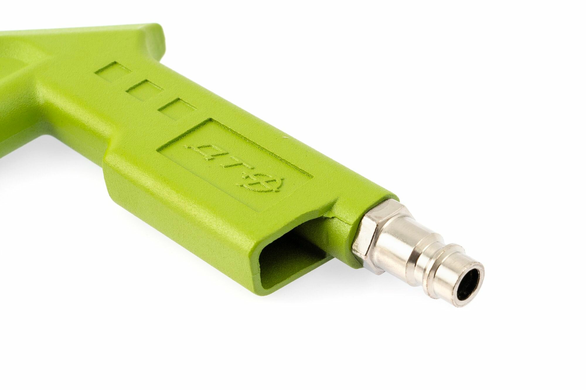 Поставляется в комплекте со стандартным соплом 15 мм и удлинённым соплом 200 мм (арт. 945 192) Продувочный пневматический пистолет используется совместно с компрессором для очистки различных поверхностей от пыли, грязи, окалины и других загрязнений. Применяется в автомобильных мастерских, металлообработке, строительстве и других отраслях. Технические характеристики: • Рабочее давление: 5-8 бар; • Потребление воздуха: 240 л/мин; • Тип соединения: внутренняя резьба 1/4' (F), быстросъемный штуцер "папа" (М).