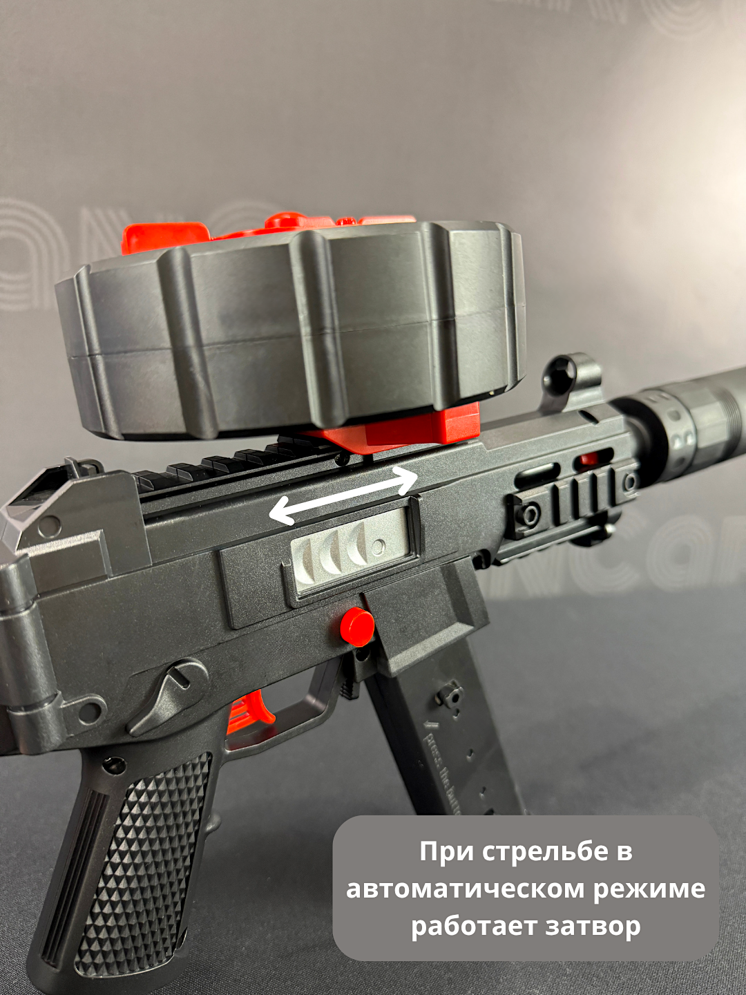 Купить Пистолет-пулемет UMP 45 на орбизах автоматический, барабанный магазин, аккумулятор, предохранитель, подарочная упаковка с доставкой по всей России.