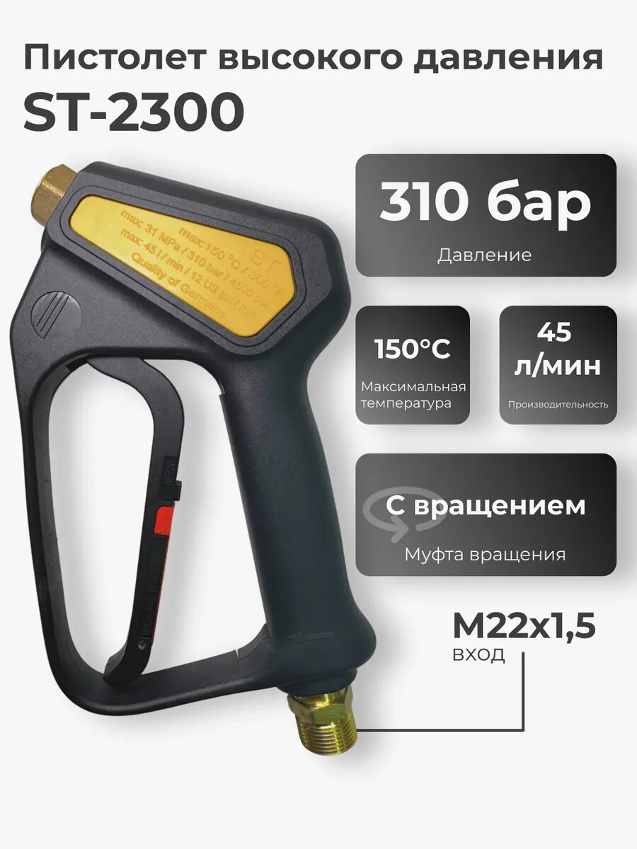 Купить Пистолет высокого давления ST 2300 с вращением M22/1.5 с доставкой по всей России. Пистолет высокого давления ST 2300 с вращением M22/1.5: сравнение цен, характеристики, фото, актуальное наличие и цены.