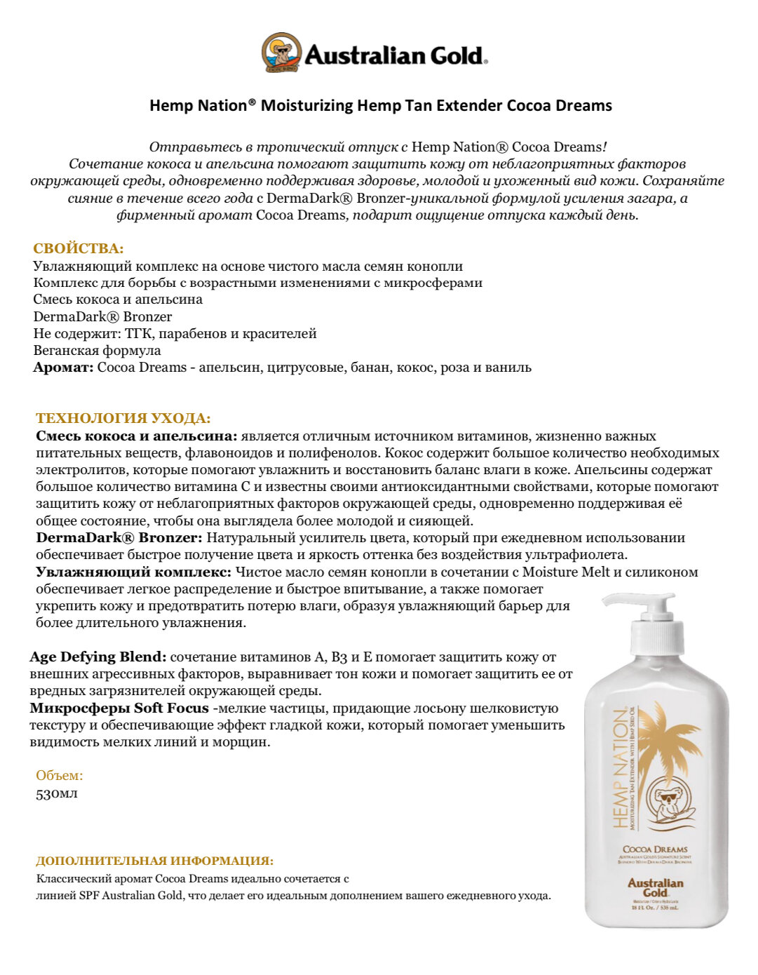 Купить Увлажняющий крем для тела Hemp Nation COCOA DREAMS Body lotion 535 мл с доставкой по всей России.