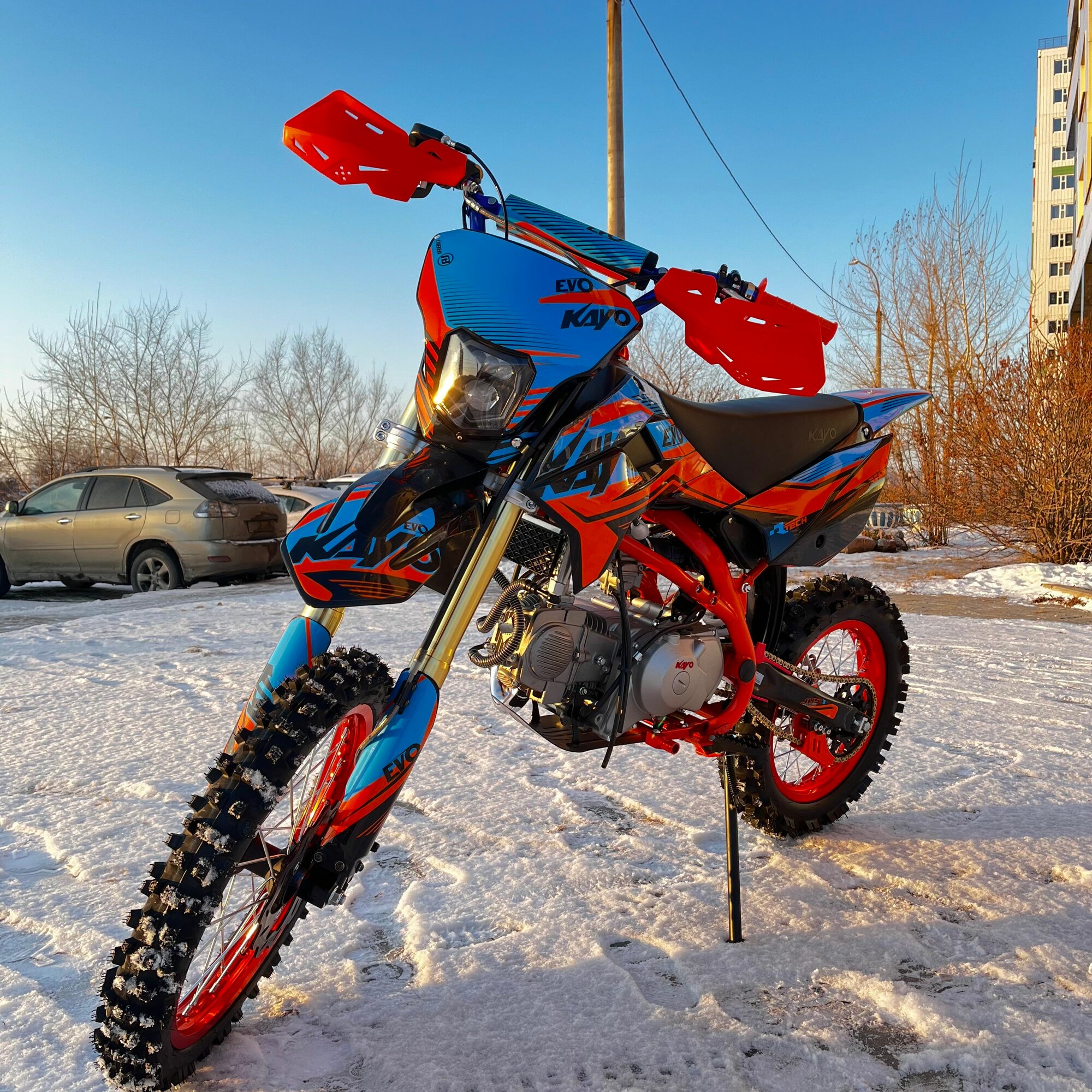 Другие отличия от Basic - на Evolution ставится резина Kenda, алюминиевый руль, алюминиевая лапка переключения передач, улучшенная лапка кик-стартера и педаль заднего тормоза с алюминиевым треугольником. Также в комплекте идёт базовая защита рук.