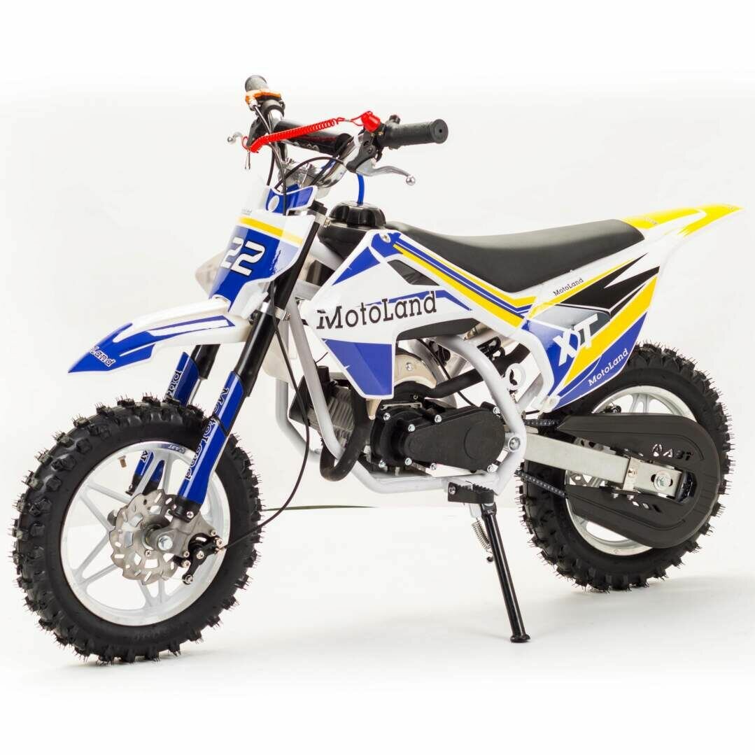 Детский мотоцикл MotoLand XT 50 предназначен для детей от 3 до 7 лет, которые только начинают изучать мотоцикл и технику езды. Особенности модели:50 кубовый, 2-х тактный мотор с вариатором (автоматическая трансмиссия), простой в обслуживании, легкий в обращении, дал газу и поехал, мощность 2,5 лс. Легко справится с весом ребенка и в тоже врем не позволить развить опасную скорость. Для безопасности имеется чека отключения двигателя, если ребенок отпускает руль, то мотоцикл практически сразу отключается при разрыве чеки. Дисковые надежные тормоза. Система запуска ручная. Максимальная скорость 30 км/чСистема смазки: Бензин с маслом (25:1 (бензин/масло) 40гр 2-х тактного масла на 1 литр 92 бензина). Объем топливного бака: 1 л. Расход топлива: 1 л./час. Вес: 25 кг. (собранный)27 кг. (в упаковке)Стартер: Новый механизм, металлический ручной, усилие на запуск снижено в несколько раз. (ребенок 4-5 лет сможет самостоятельно завести).