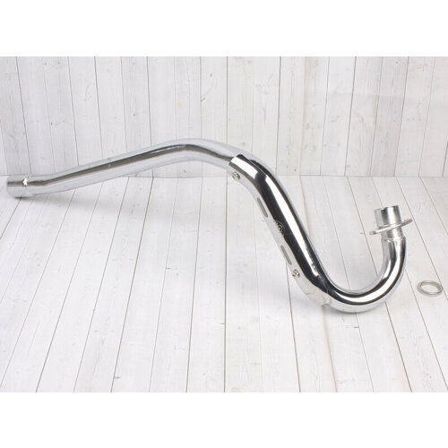 Выхлопная труба для рам KAYO CRF801. Подходит на питбайки KAYO и аналоги, где используется рамы типа "клетка" CRF70 / KRZ. Параметры: Внутренний диаметр трубы - 33 (мм)Внешний диаметр трубы под посадку глушителя - 38 (мм)Кеплление к двигателю - стандартное для всех кабовских моторов. Для герметичного соединения глушителя с двигателем используйте прокладку (входит в комплект).